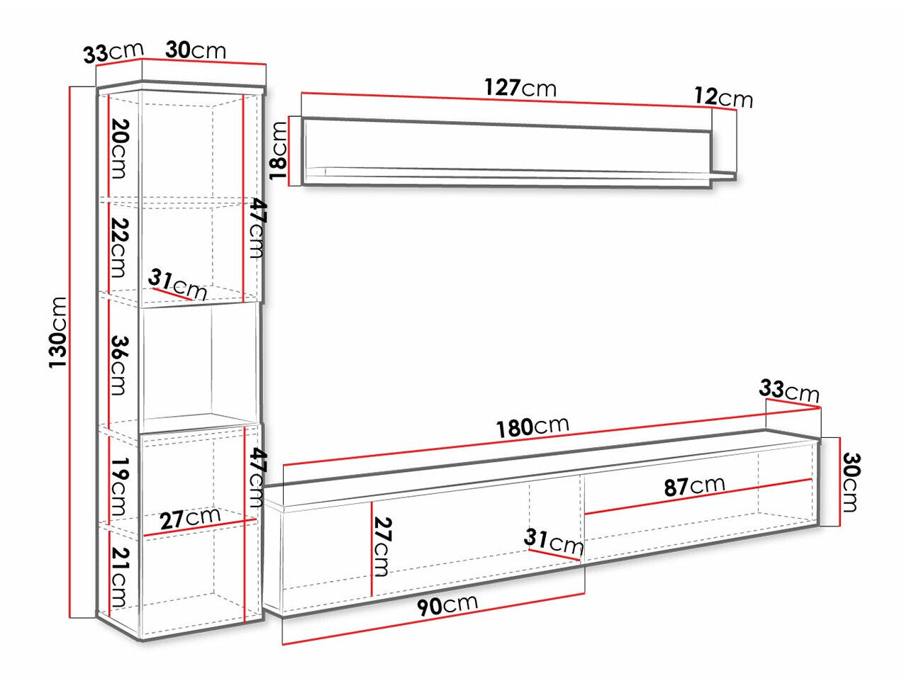 Nappali szett PARIS BR (Bamisio), Szín: Sötétszürke + Fényes fehér, Led világítás: Nem