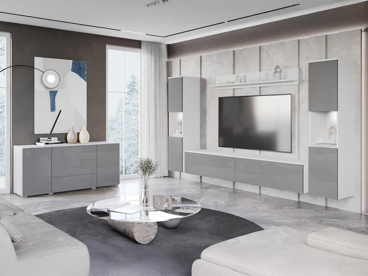 Nappali szett PARIS II (Bamisio II), Szín: Fehér + Fényes fehér, Led világítás: Igen