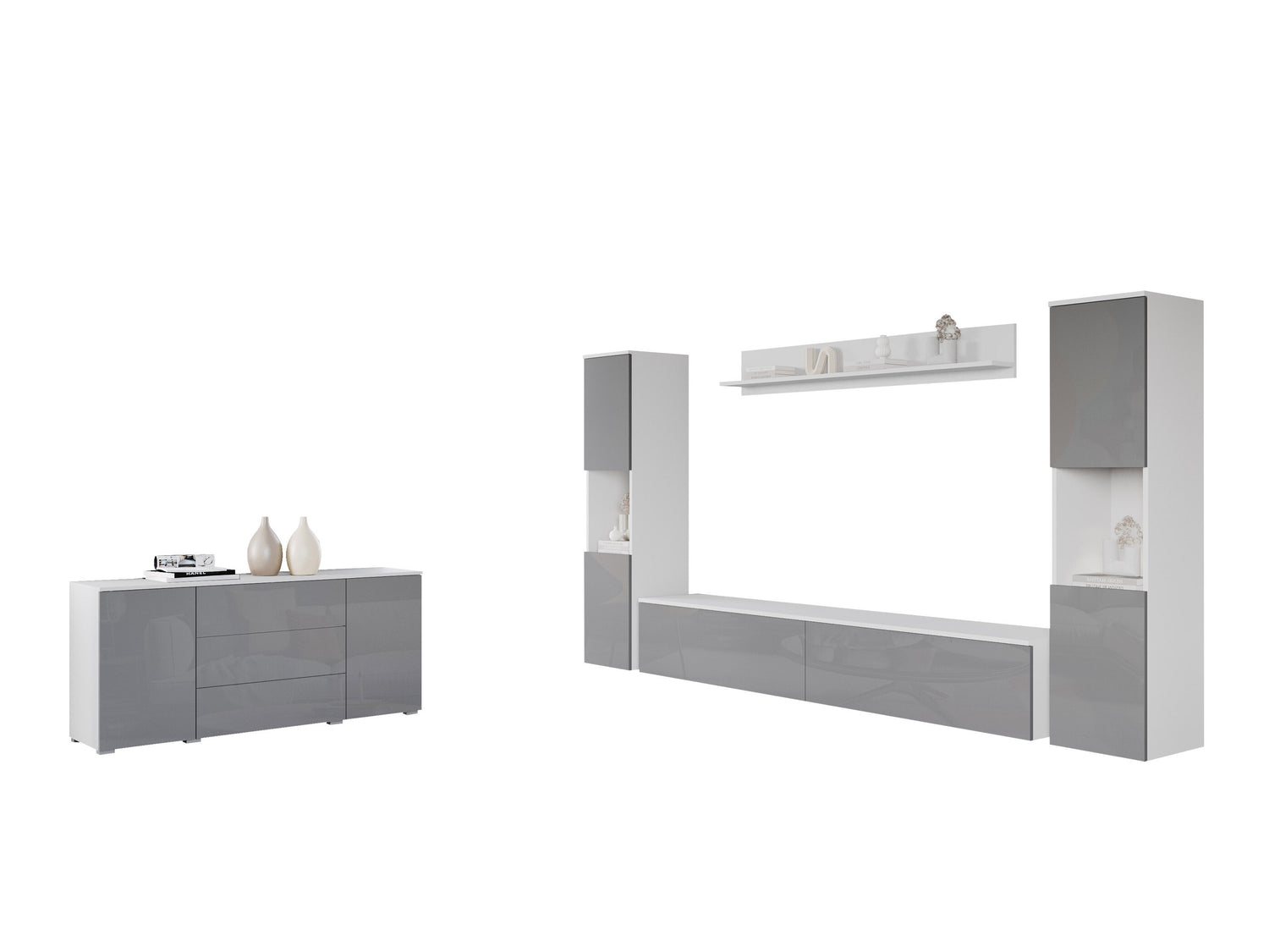 Nappali szett PARIS II (Bamisio II), Szín: Fehér + Fényes fehér, Led világítás: Nem