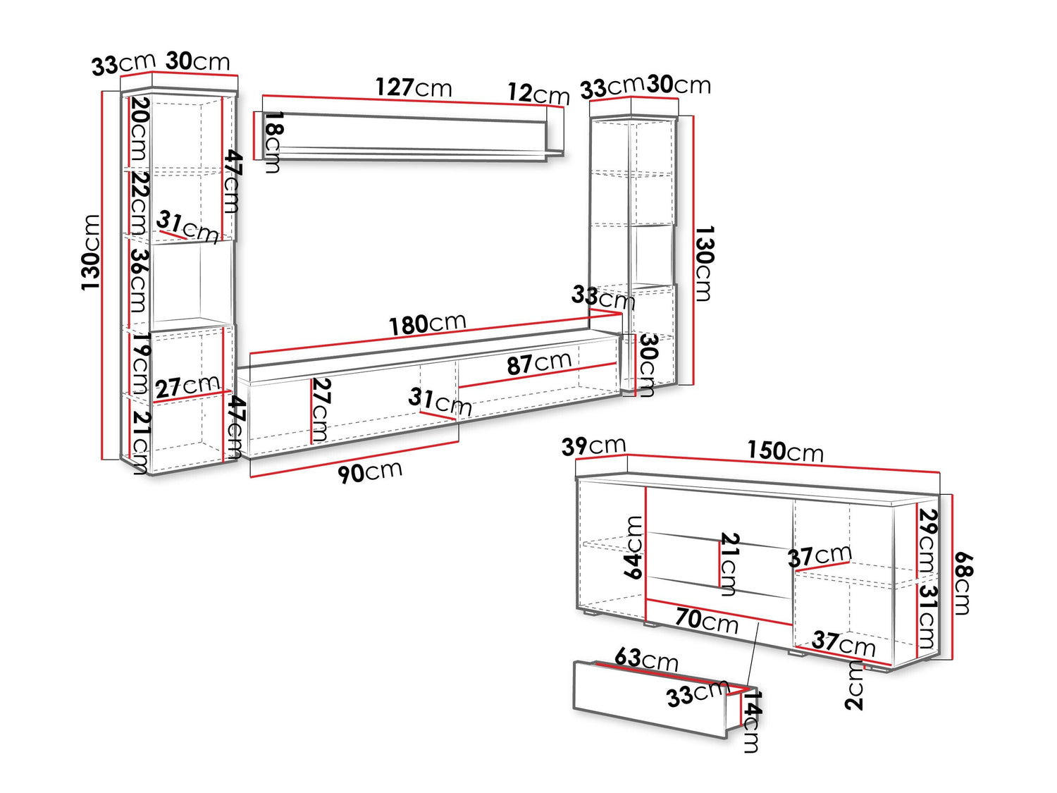 TV asztal méret30 x 180 x 33 cm