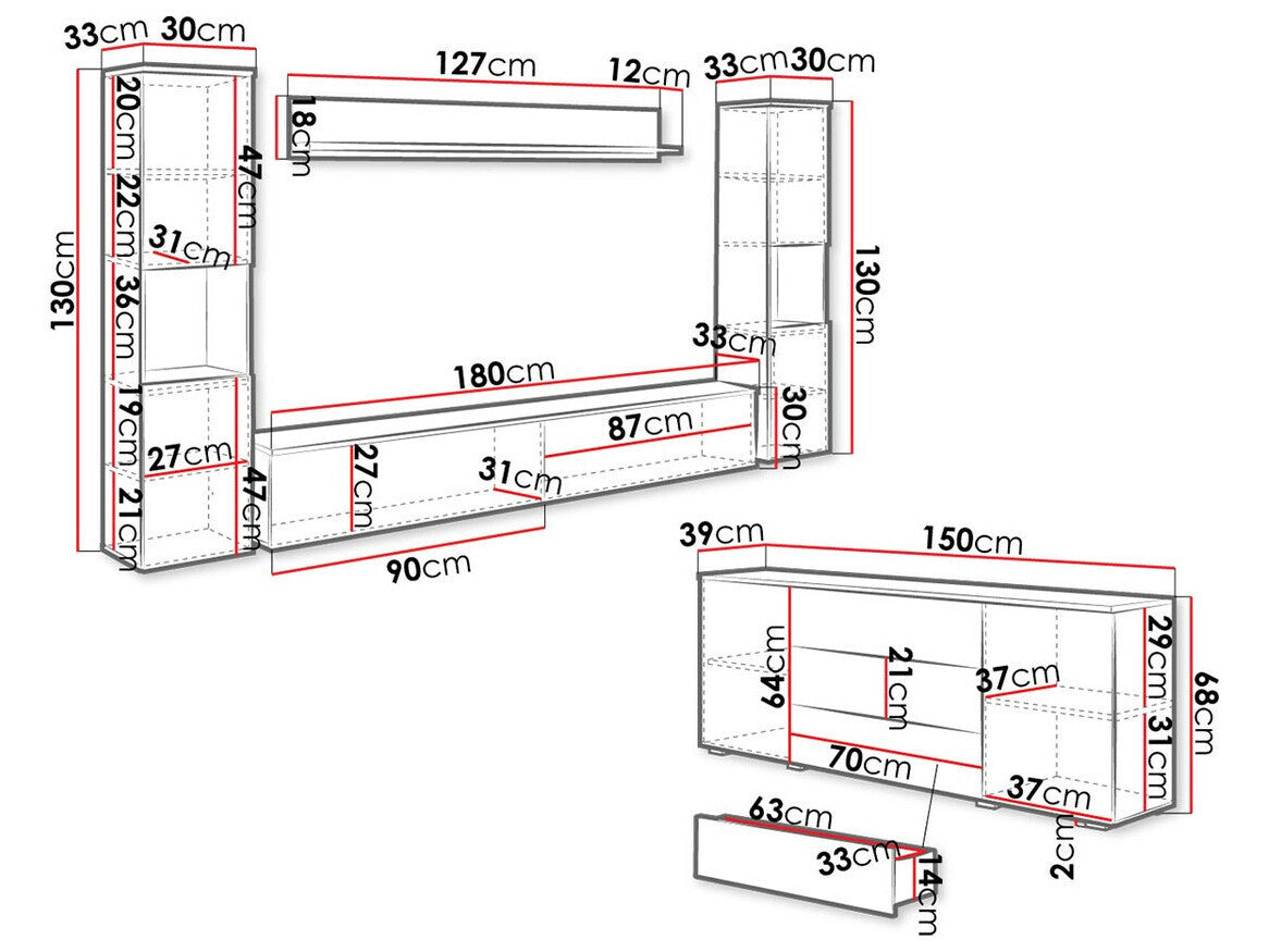 TV asztal méret30 x 180 x 33 cm