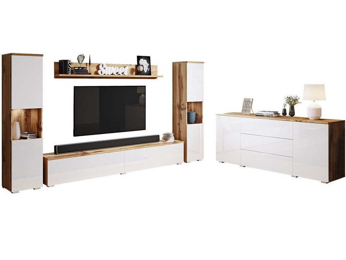Nappali szett PARIS II (Bamisio II), Szín: Wotan tölgy + Fényes fehér, Led világítás: Igen