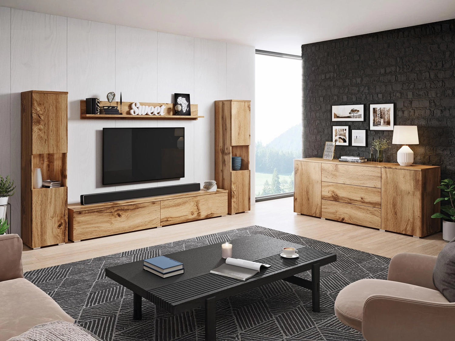 Nappali szett PARIS II (Bamisio II), Szín: Wotan tölgy, Led világítás: Nem