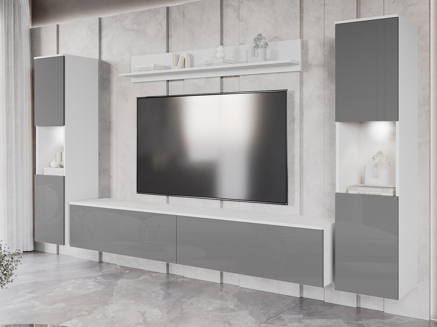 Nappali szett PARIS XL (Bamisio), Szín: Fehér + Fényes szürke, Led világítás: Igen