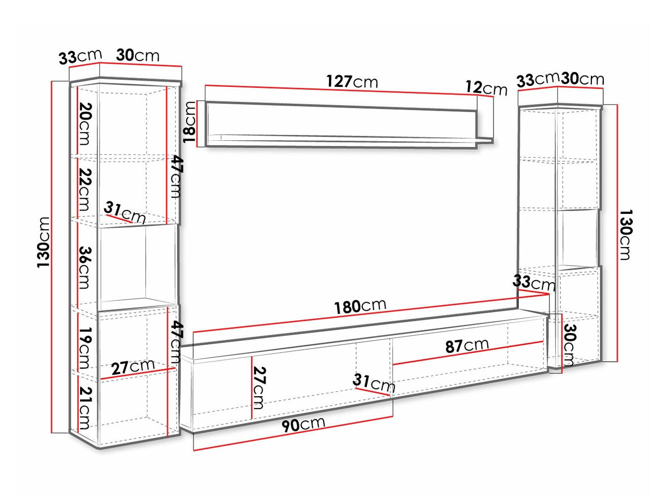 Nappali szett PARIS XL (Bamisio), Szín: Sötétszürke + Fényes fehér, Led világítás: Igen