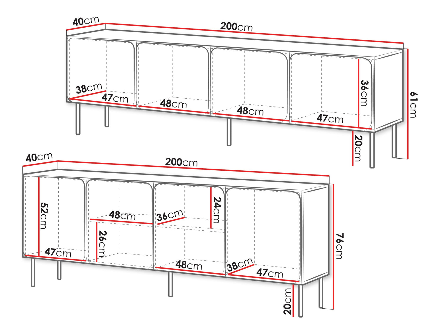 TV asztal méretei61 x 200 x 40 cm