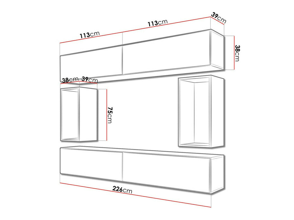 Függesztett szekrény méretei38 x 226 x 39 cm