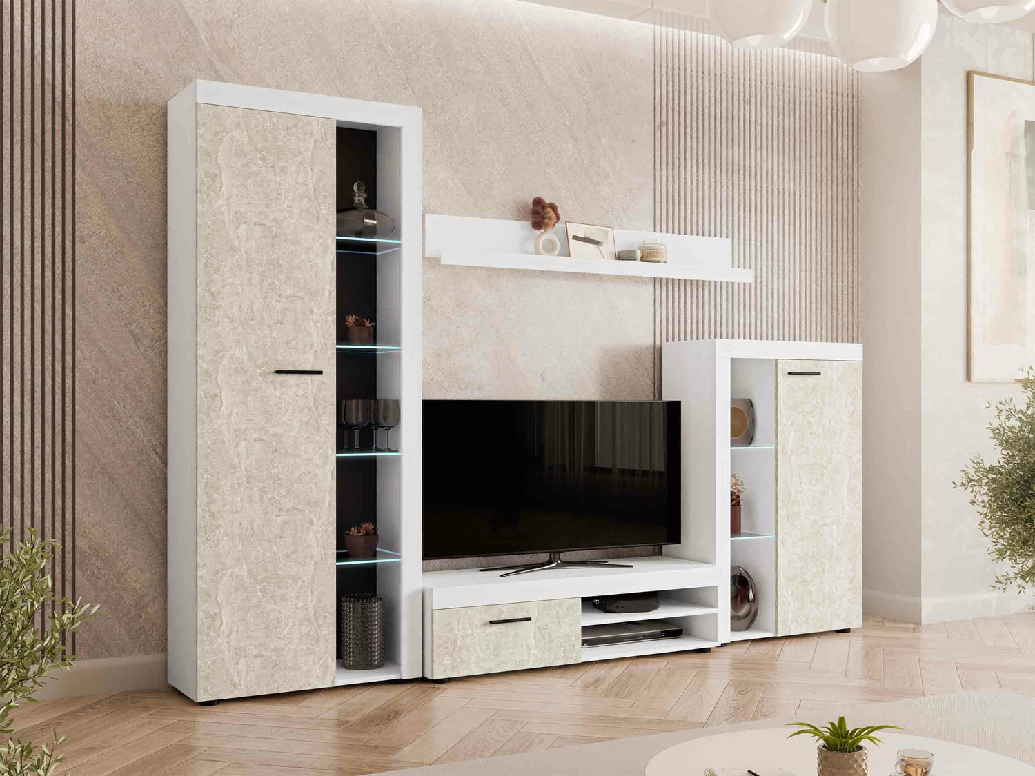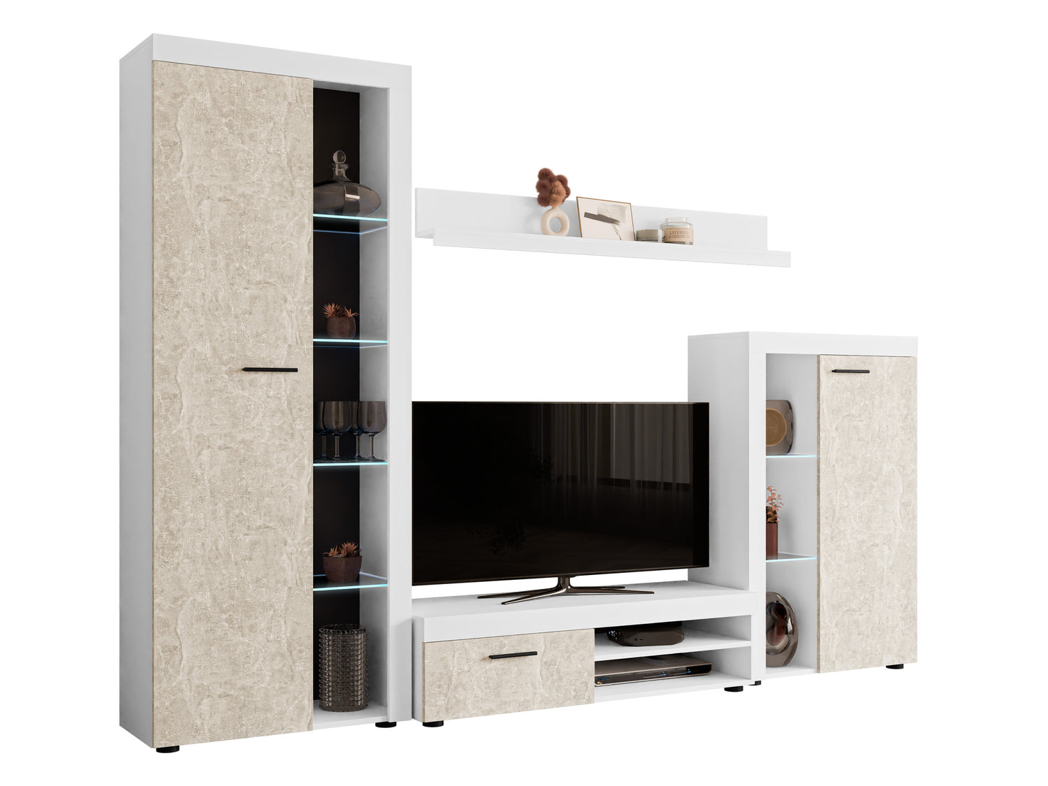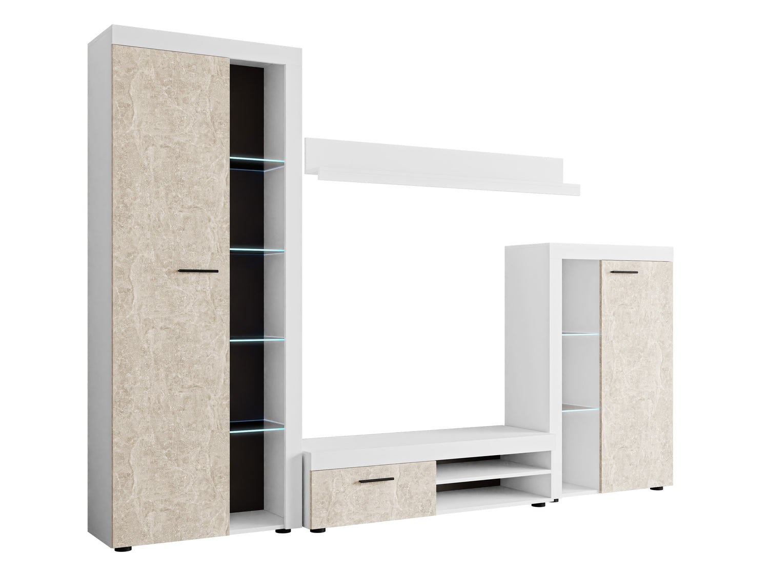 Nappali szett Rumba garnitúra (Rodos), Led világítás: Igen, Szín: Fehér + Beton
