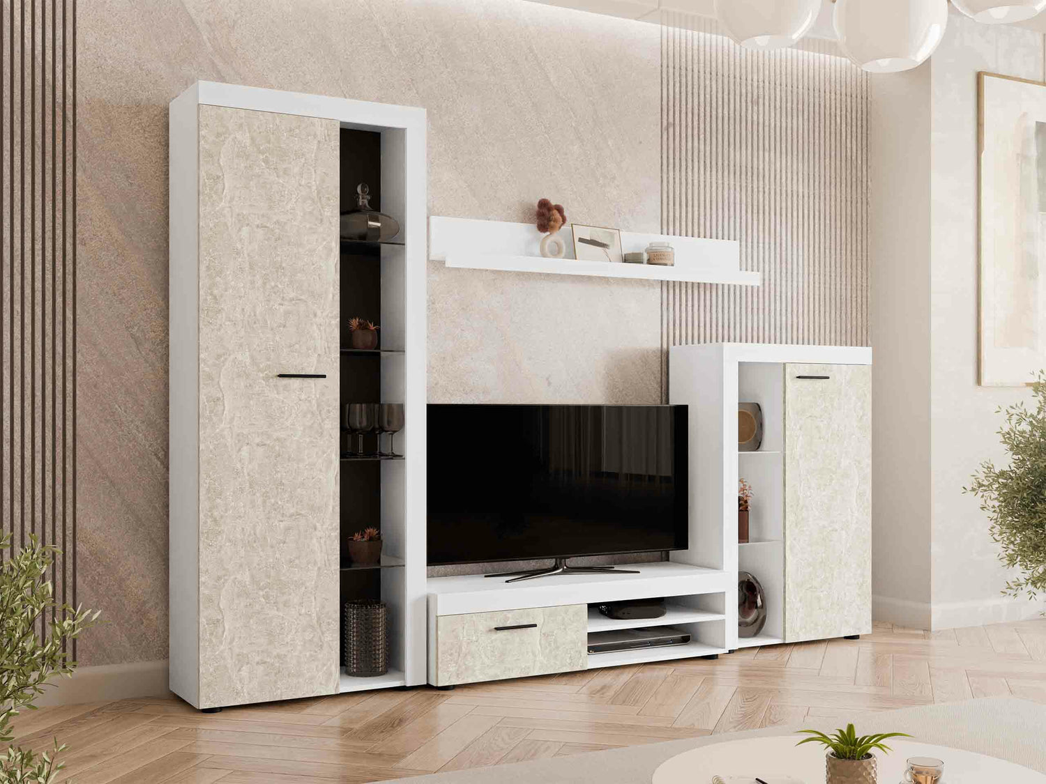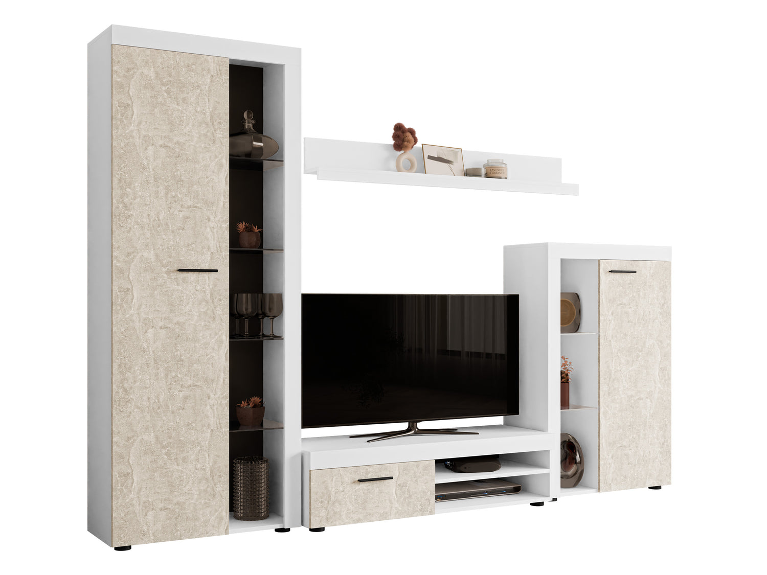 Nappali szett Rumba garnitúra (Rodos), Led világítás: Nem, Szín: Fehér + Beton