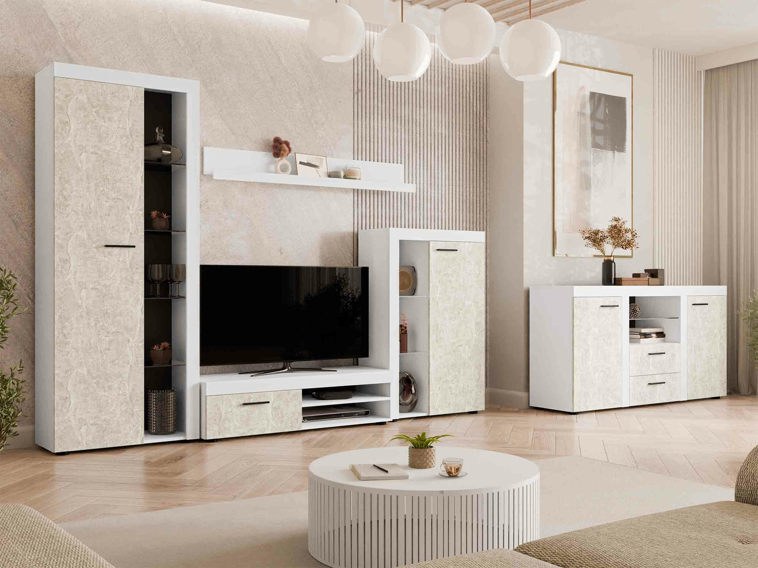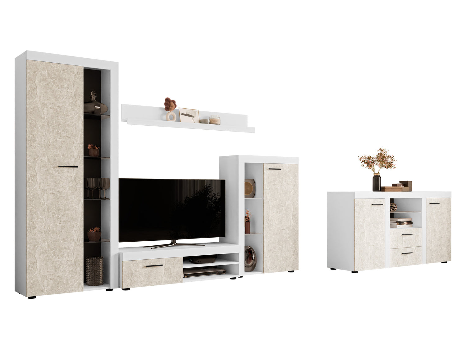 Nappali szett Rumba (Rodos) II, Led világítás: Nem, Szín: Fehér + Beton