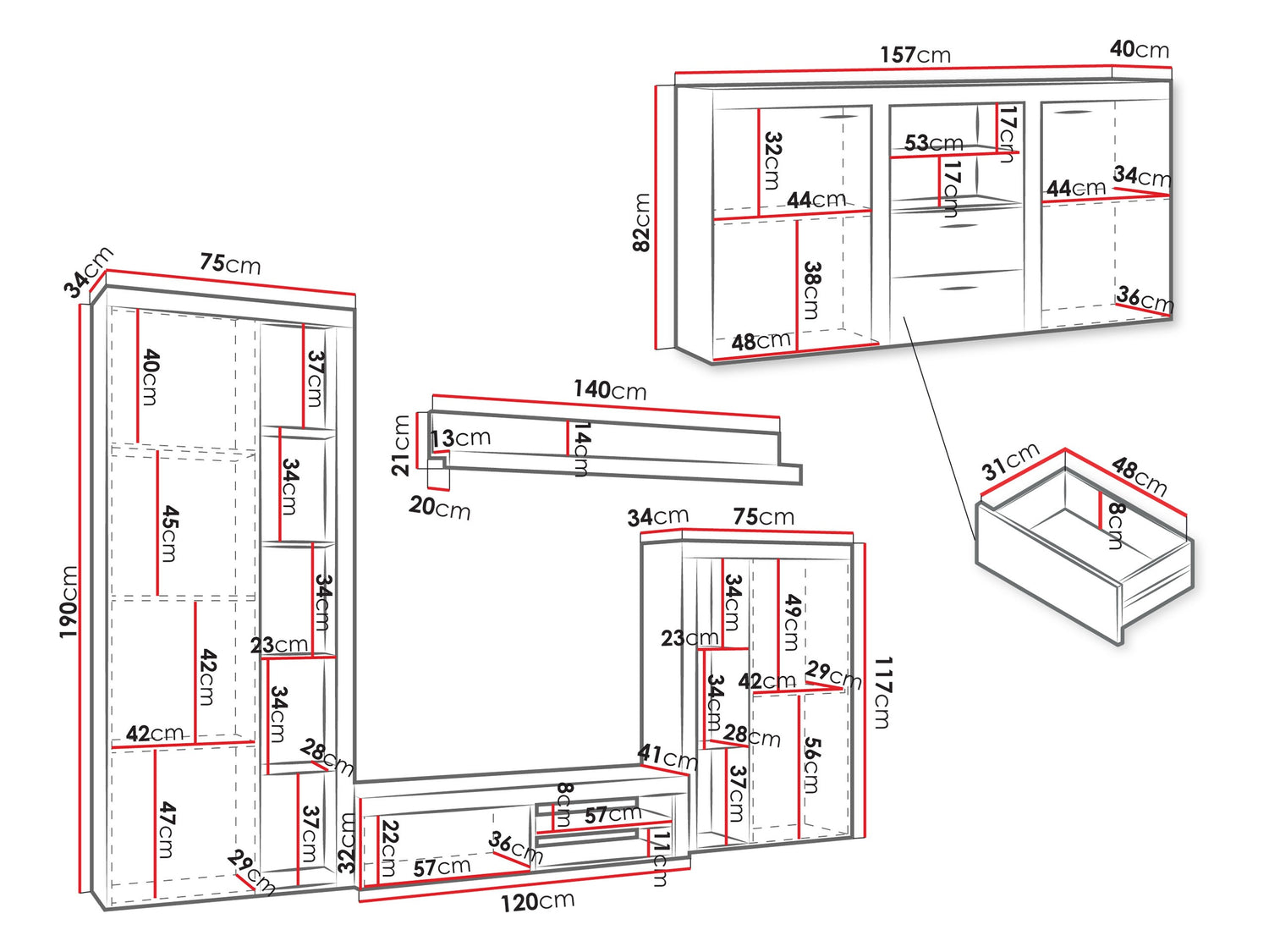 Nappali szett Rumba (Rodos) II, -világítás: Nem, Szín: Tölgy