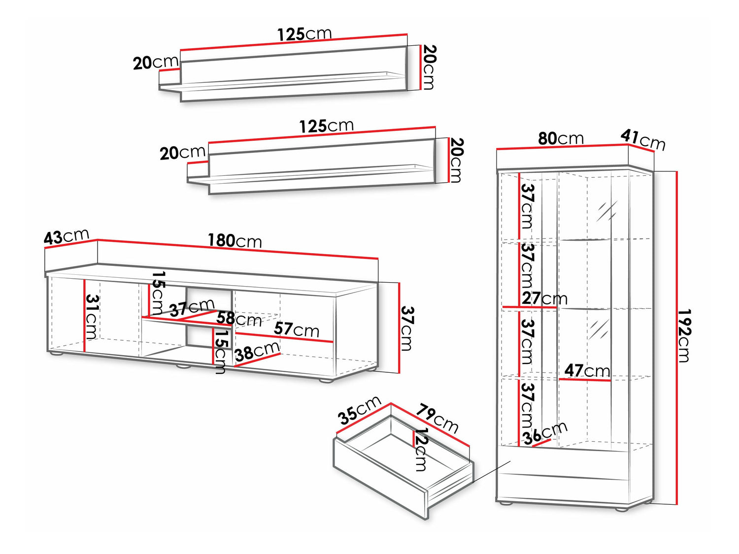 TV asztal méret37 x 180 x 43 cm
