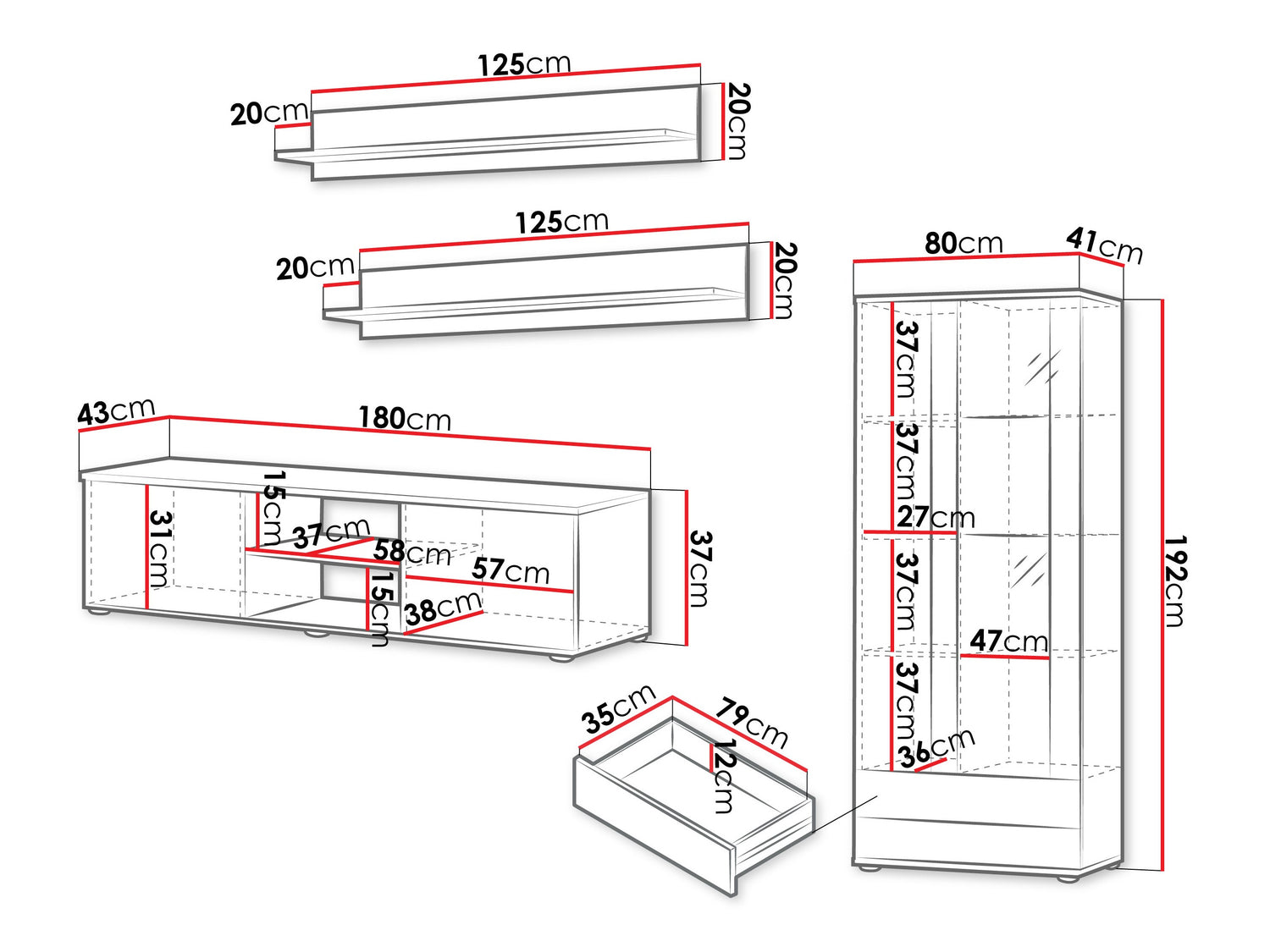 TV asztal méret37 x 180 x 43 cm