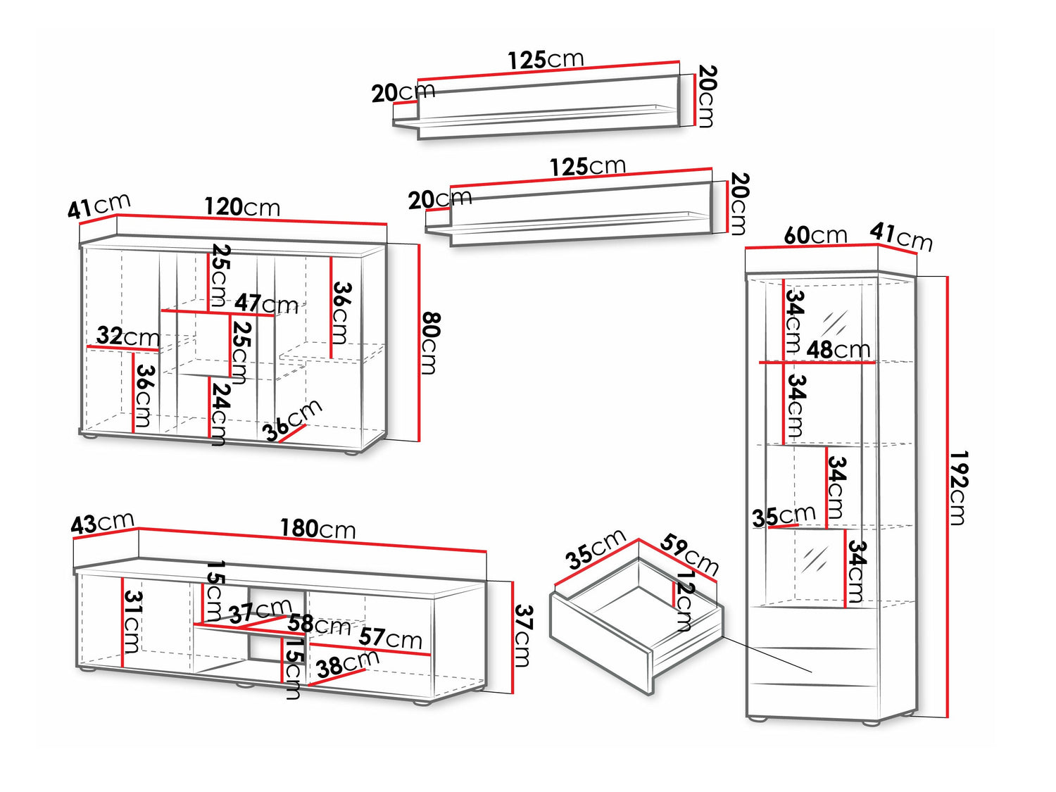 Függő polcméretek20 x 125 x 20 cm
