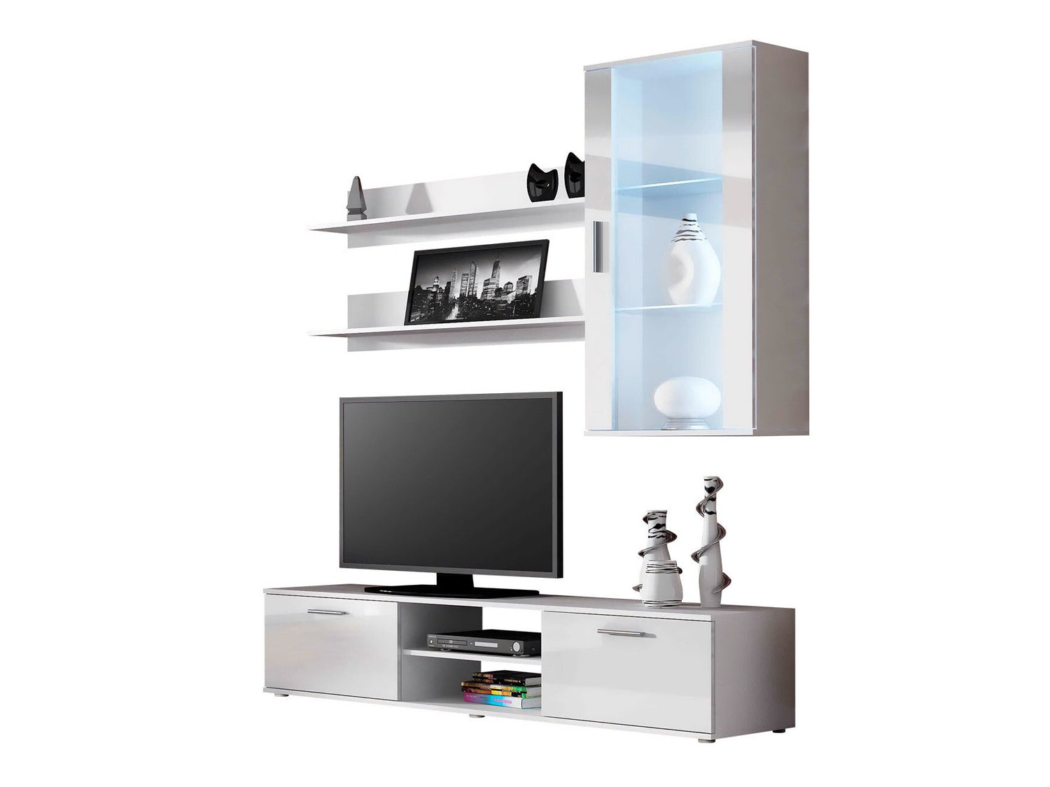 Nappali szett Soho V (Boho V), Szín: Fehér + Fényes fehér, Led világítás: Fehér