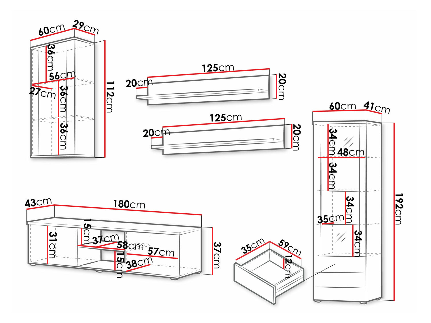 Nappali szett Soho VI (Boho VI), Szín: Fehér + Fényes fehér, Led világítás: Fehér