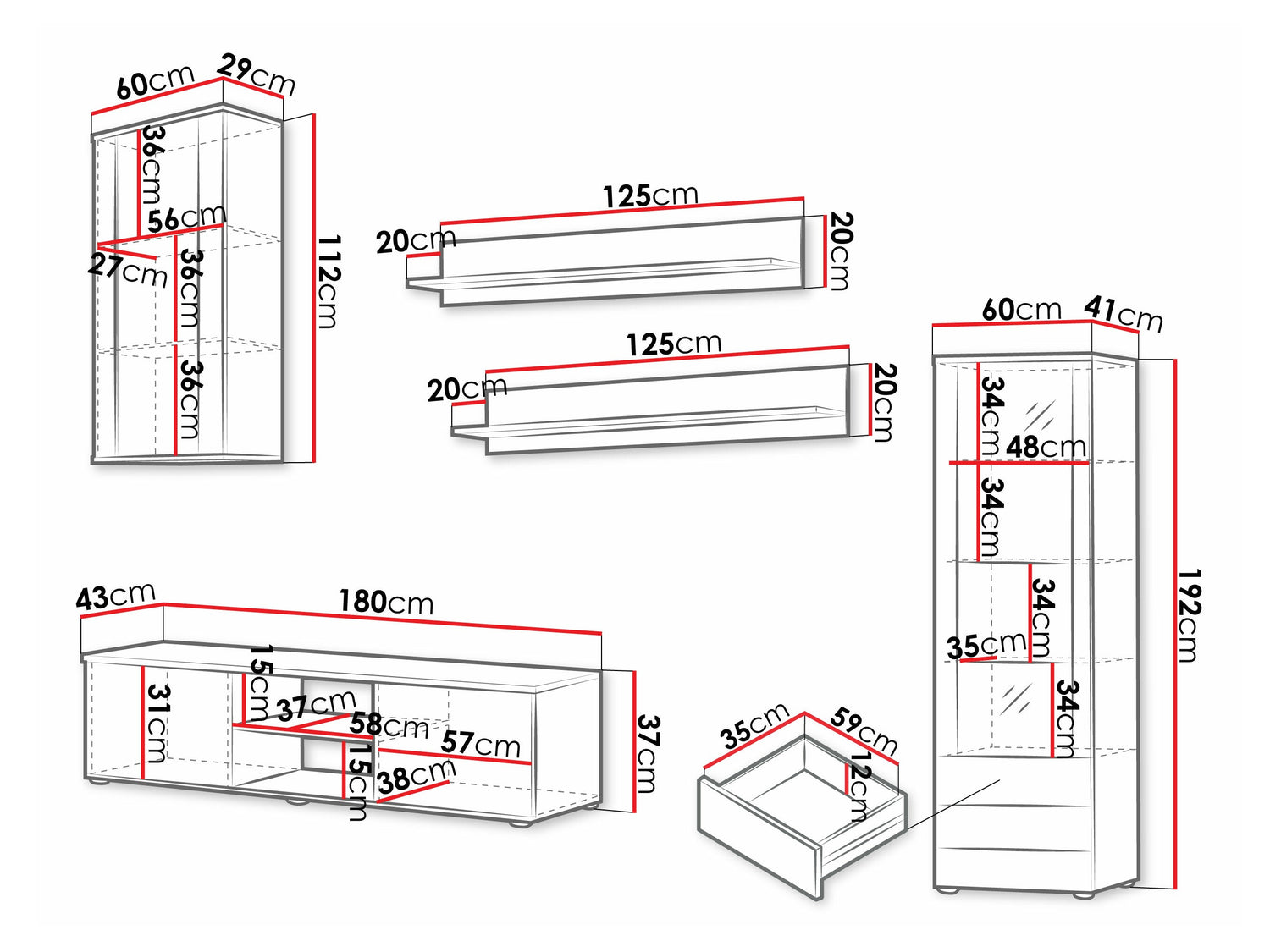 Nappali szett Soho VI (Boho VI), Szín: Fehér + Fényes fehér, Led világítás: Kék