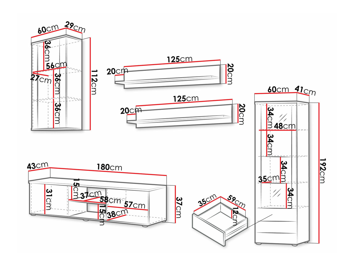 Szekrény méretei116 x 60 x 29 cm