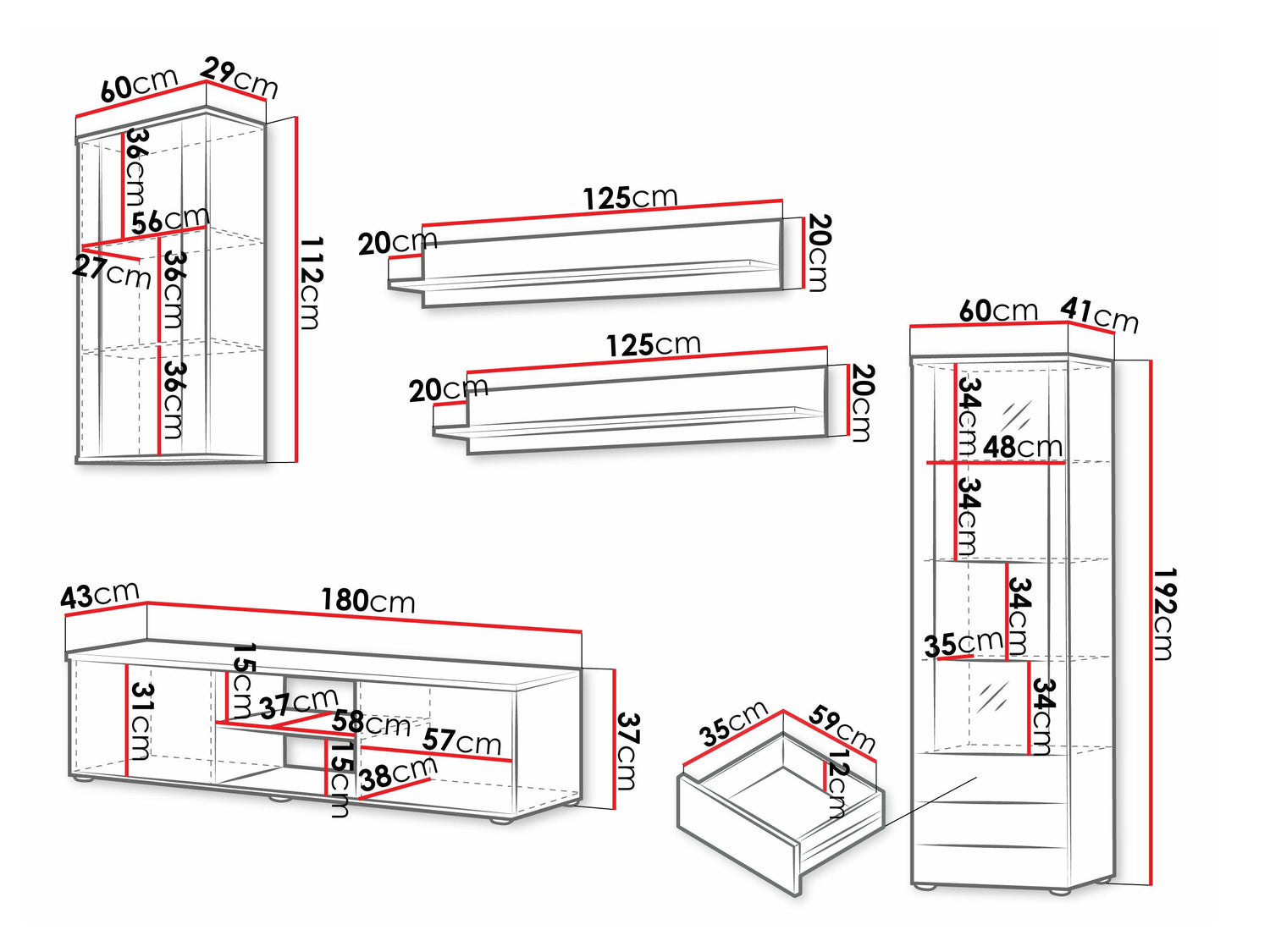 Nappali szett Soho VI (Boho VI), Szín: Fekete + Fényes fekete, Led világítás: Kék