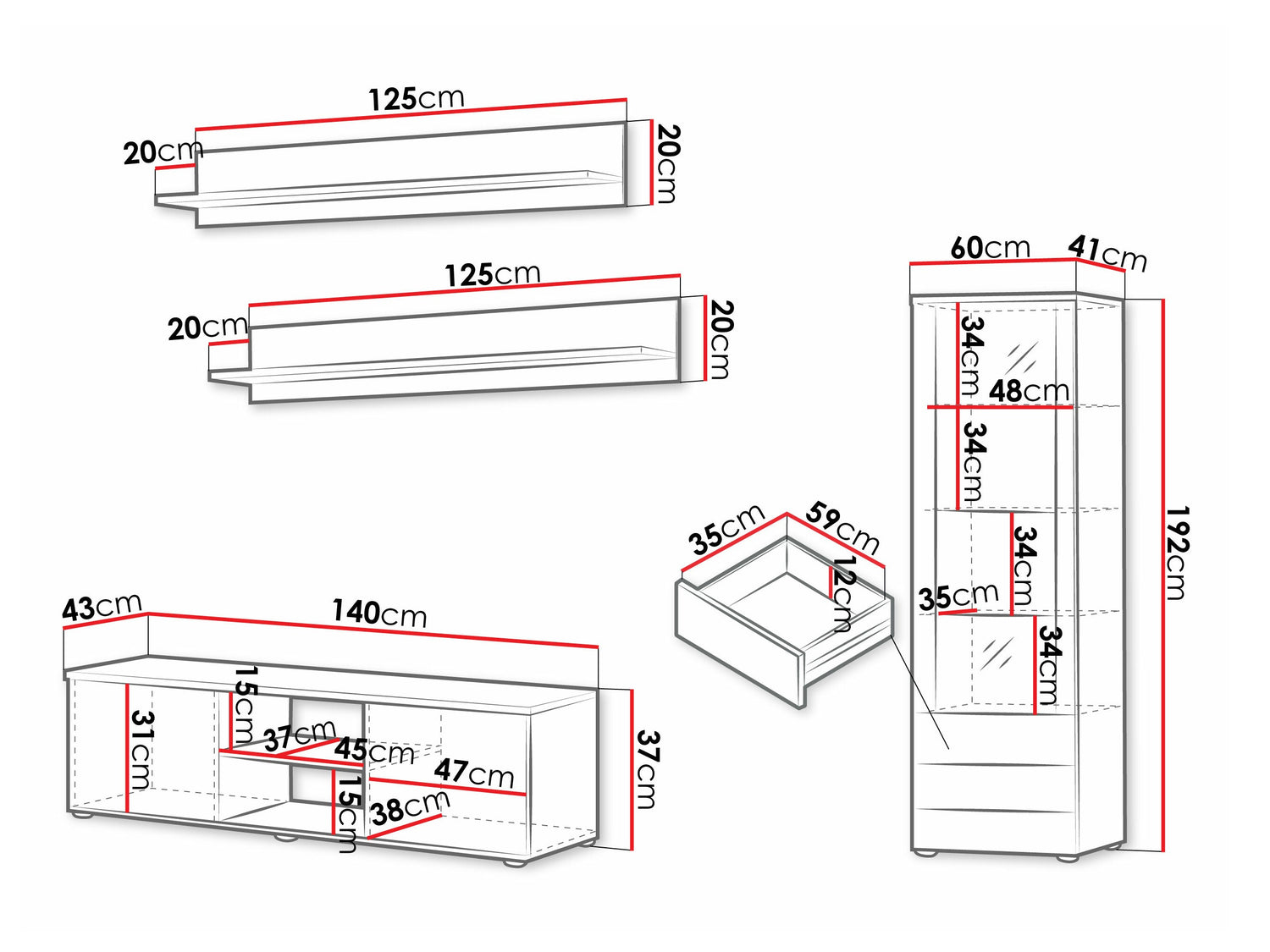 Nappali szett Soho VII (Boho VII), Szín: Fehér + Fényes fehér, Led világítás: Kék