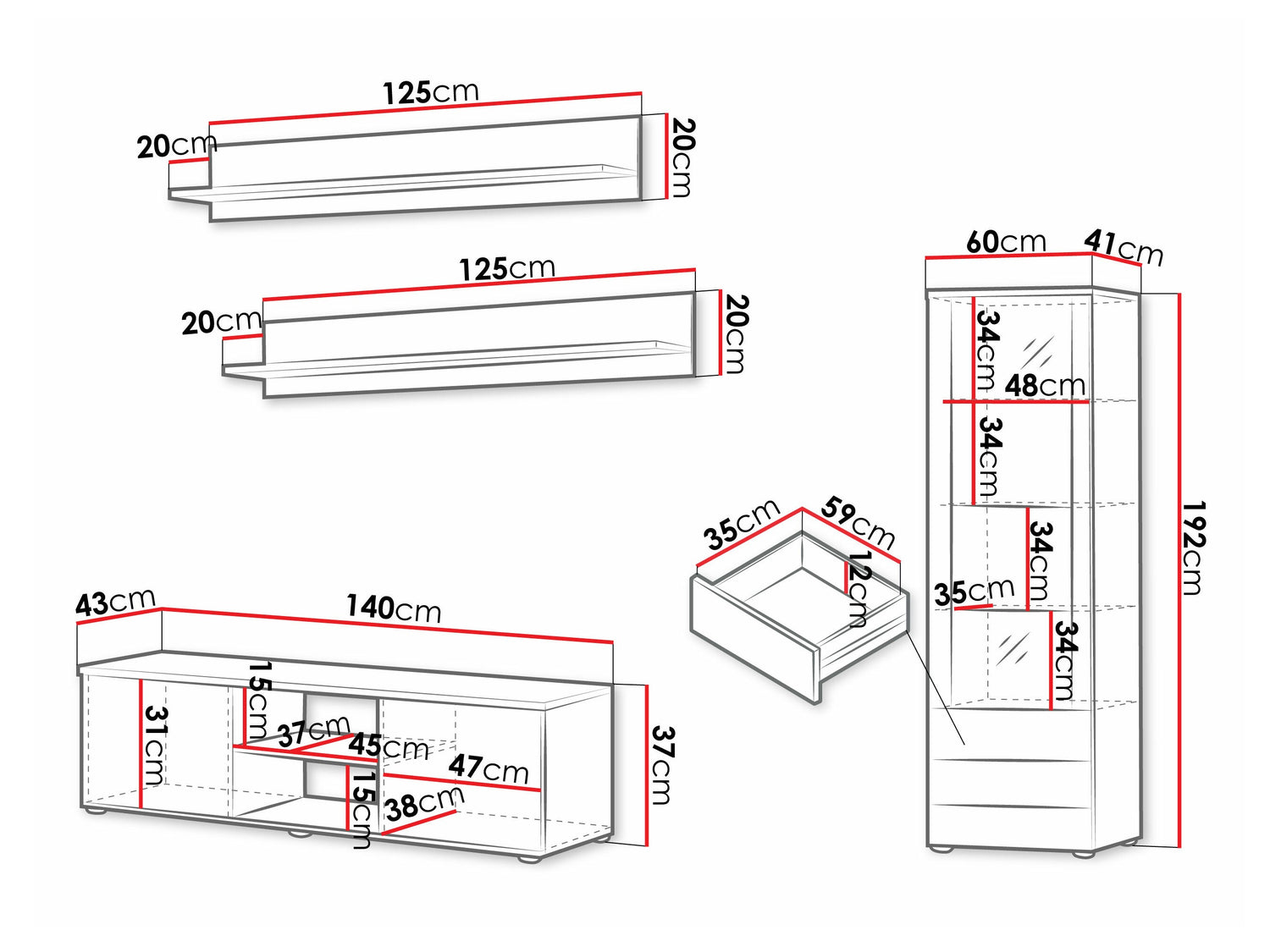 Nappali szett Soho VII (Boho VII), Szín: Fekete + Fényes fekete, Led világítás: Fehér