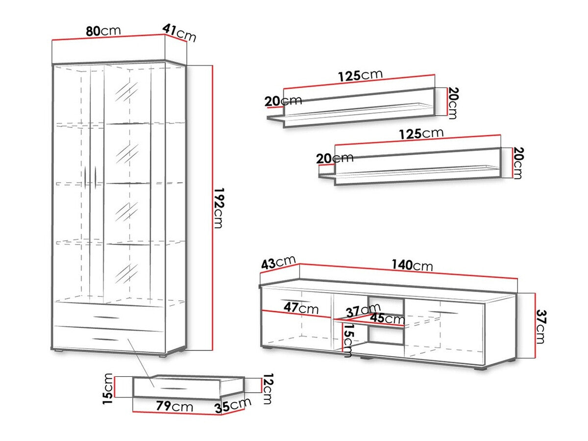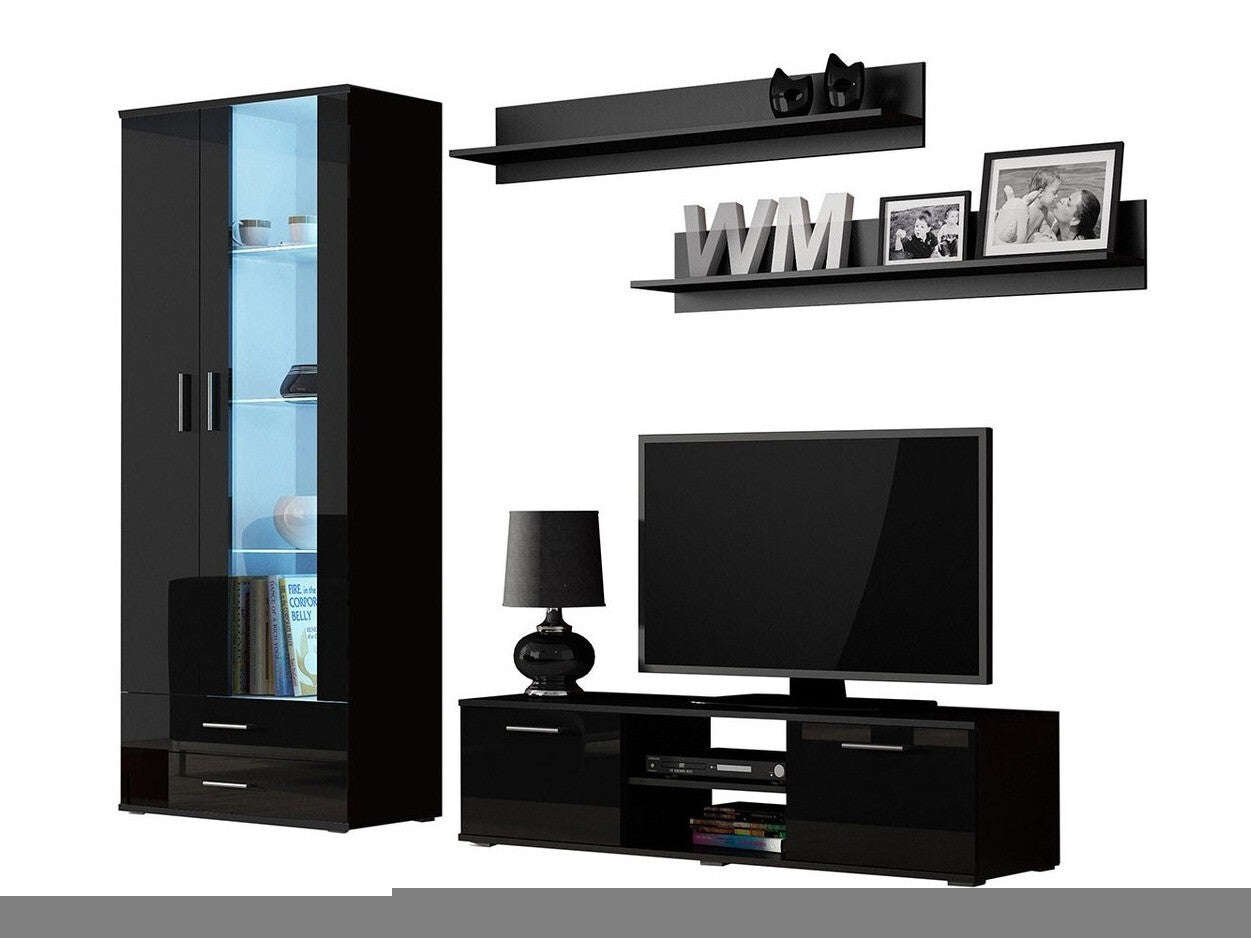 Nappali szett Soho XI (Boho XI), Szín: Fekete + Fényes fekete, Led világítás: Fehér