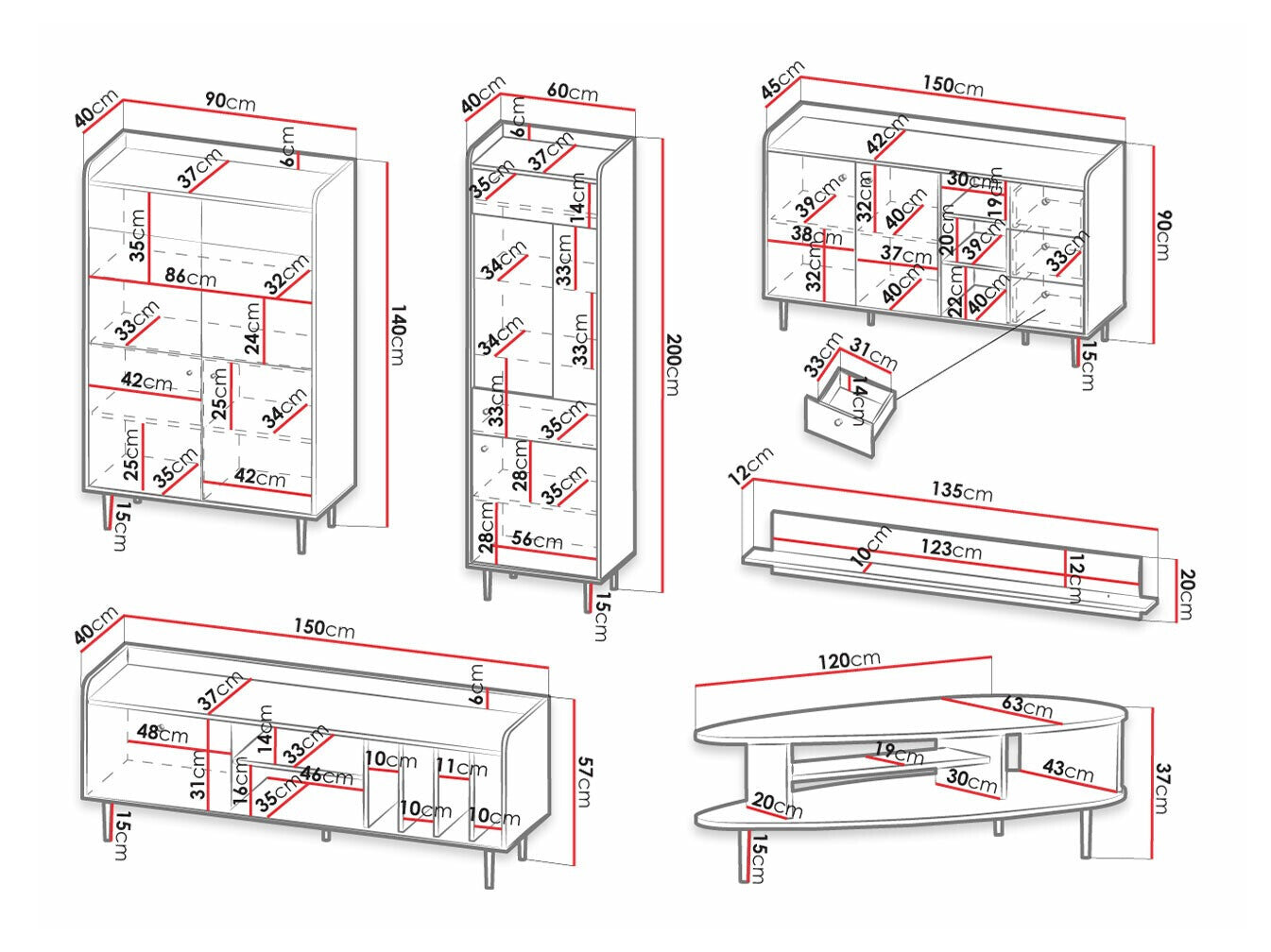 Komód méretek90 x 150 x 45 cm