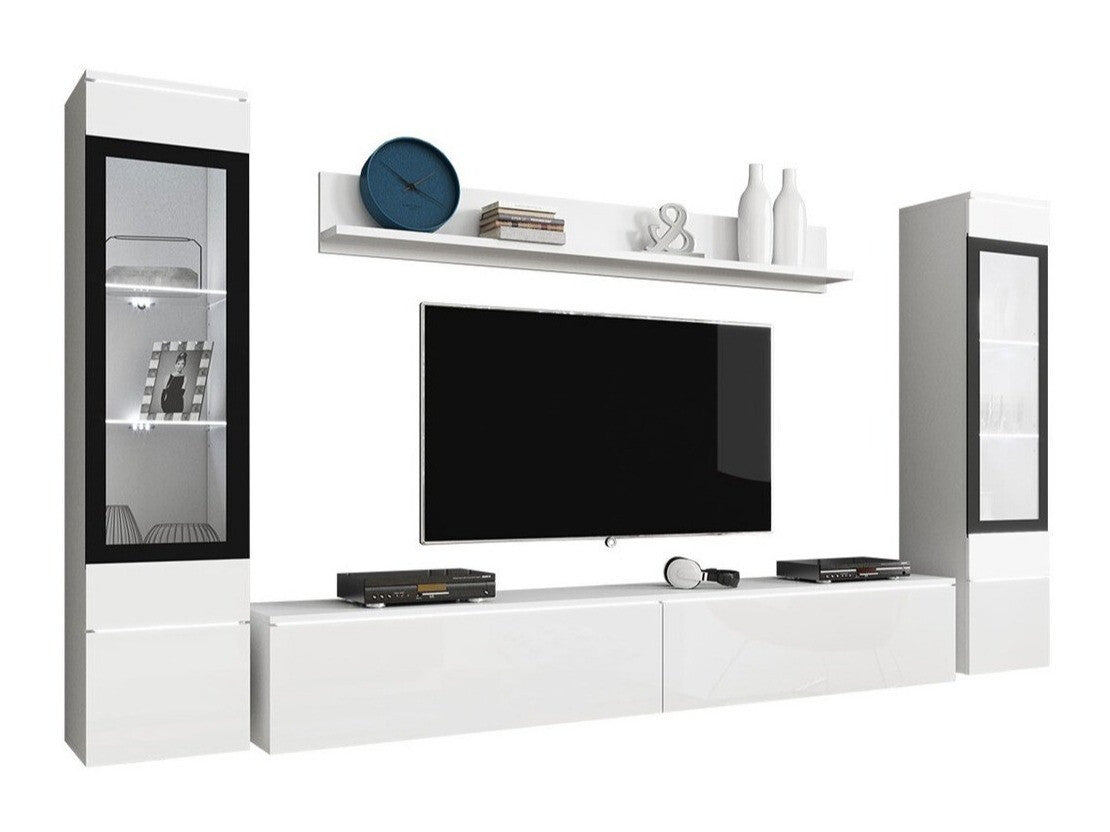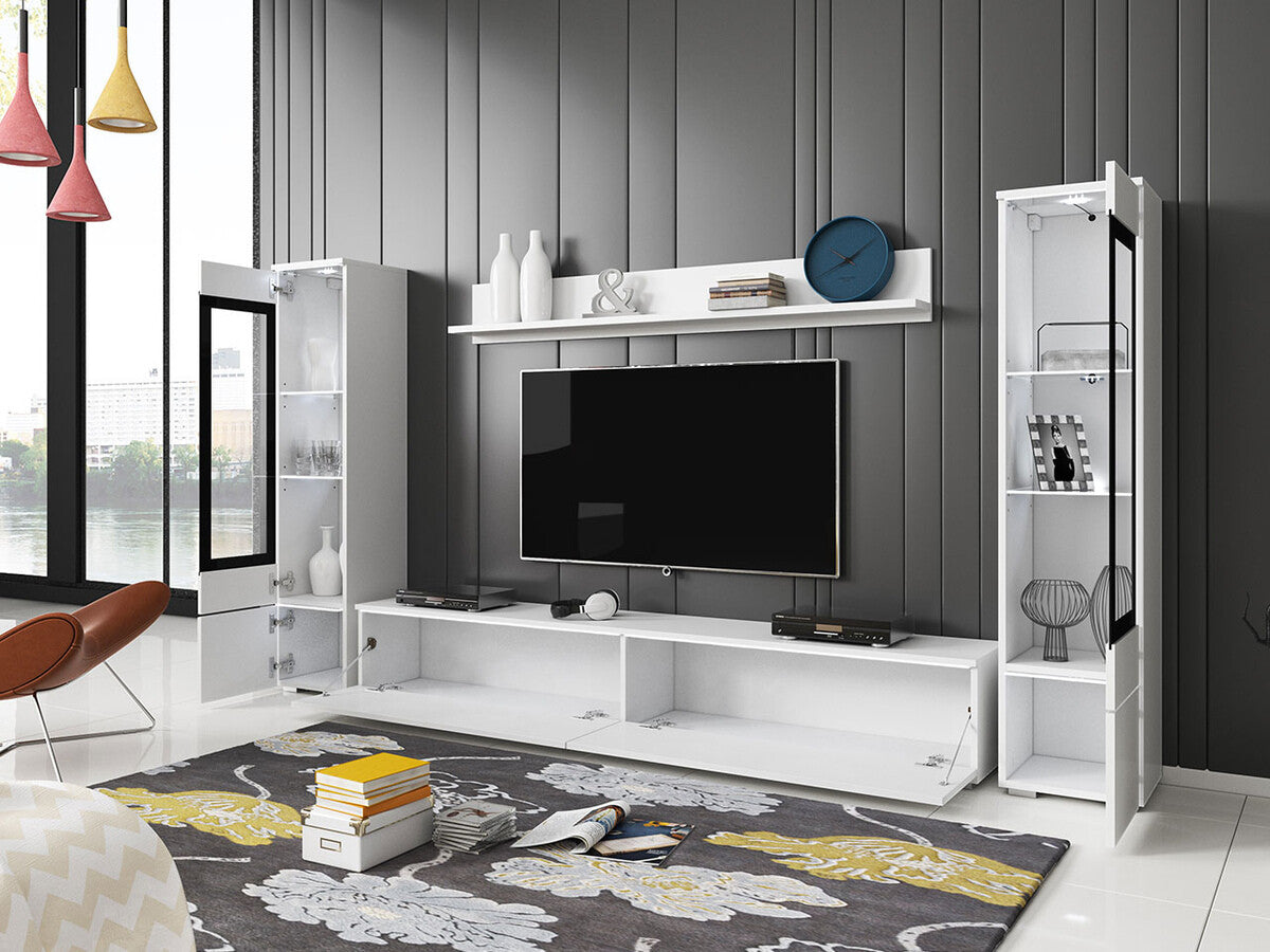 Nappali szett Vera II (Sawoti II), Szín: Fehér + Fényes fehér, Led világítás: Igen