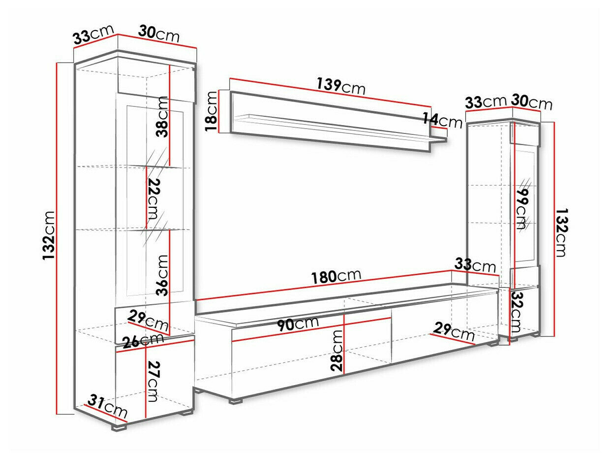 Nappali szett Vera II (Sawoti II), Szín: Fekete márvány, Led világítás: Nem