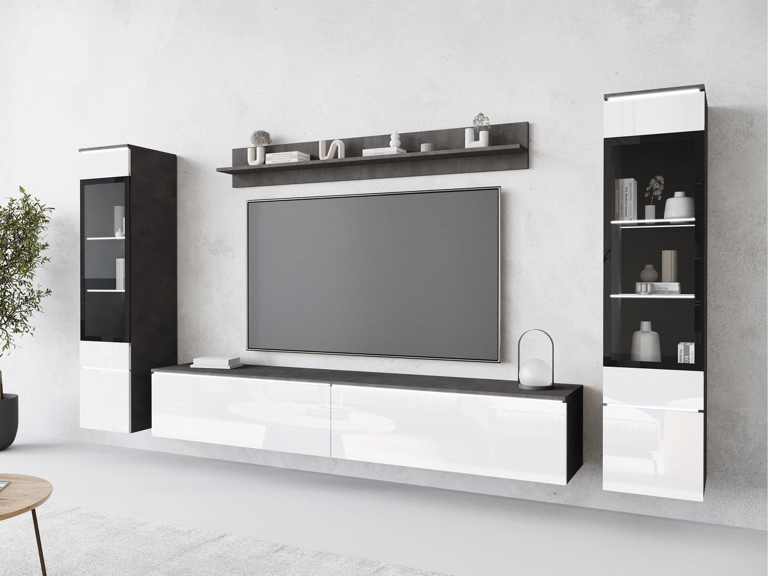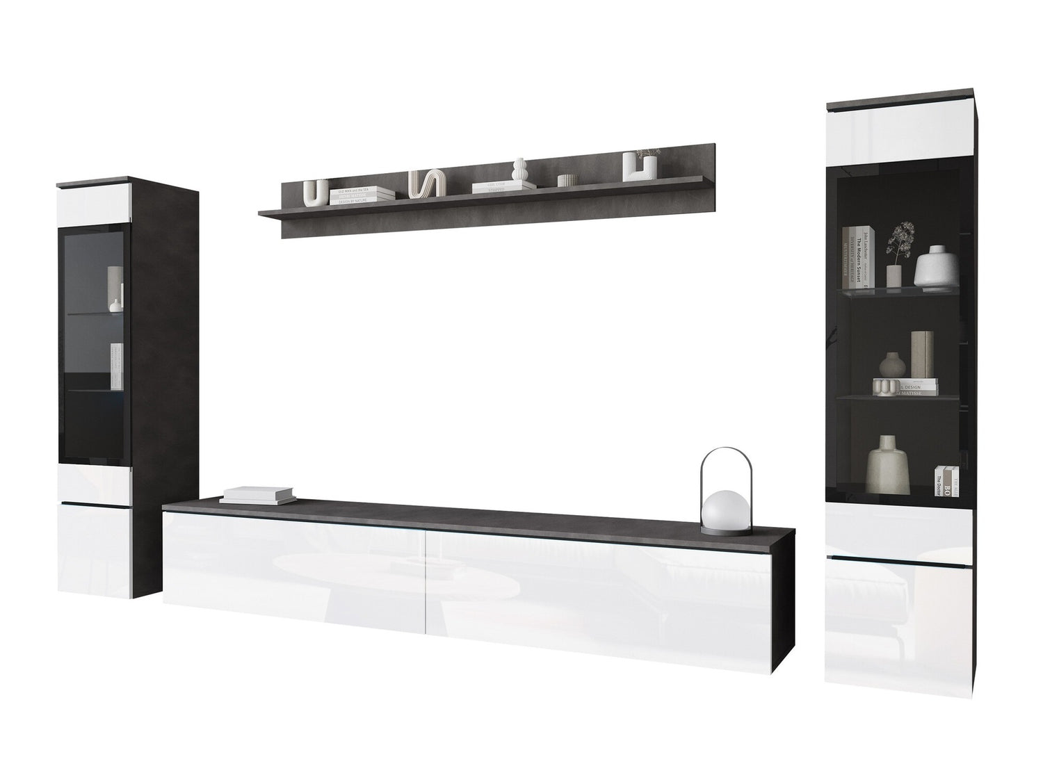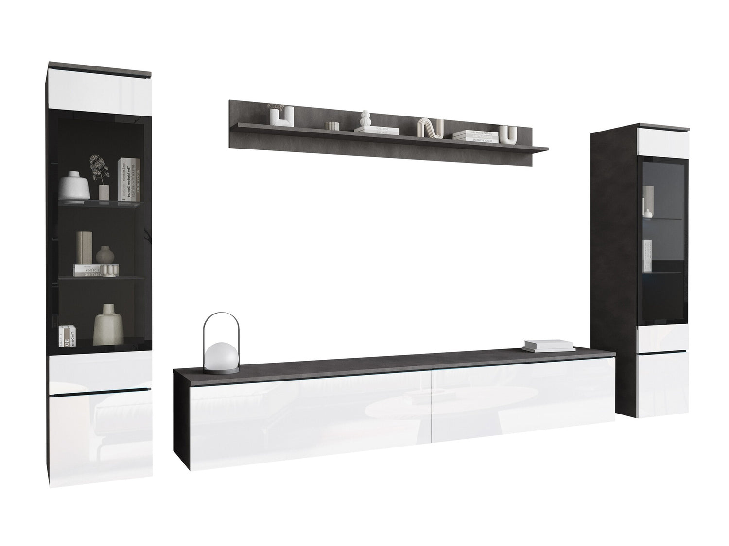 Nappali szett Vera II (Sawoti II), Szín: Matera szürke + Fényes fehér, Led világítás: Nem