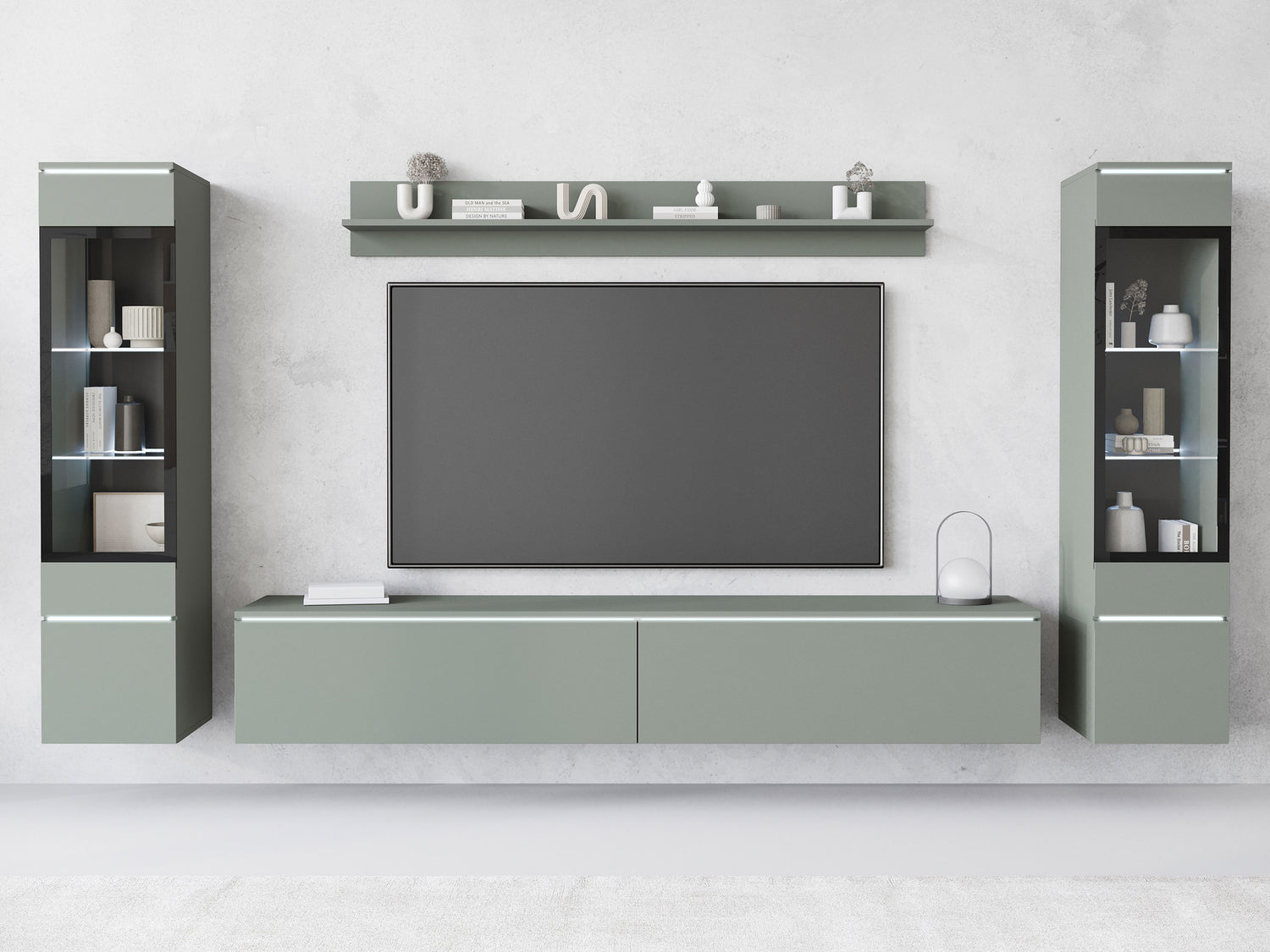 Nappali szett Vera II (Sawoti II), Szín: Poros zöld, Led világítás: Igen