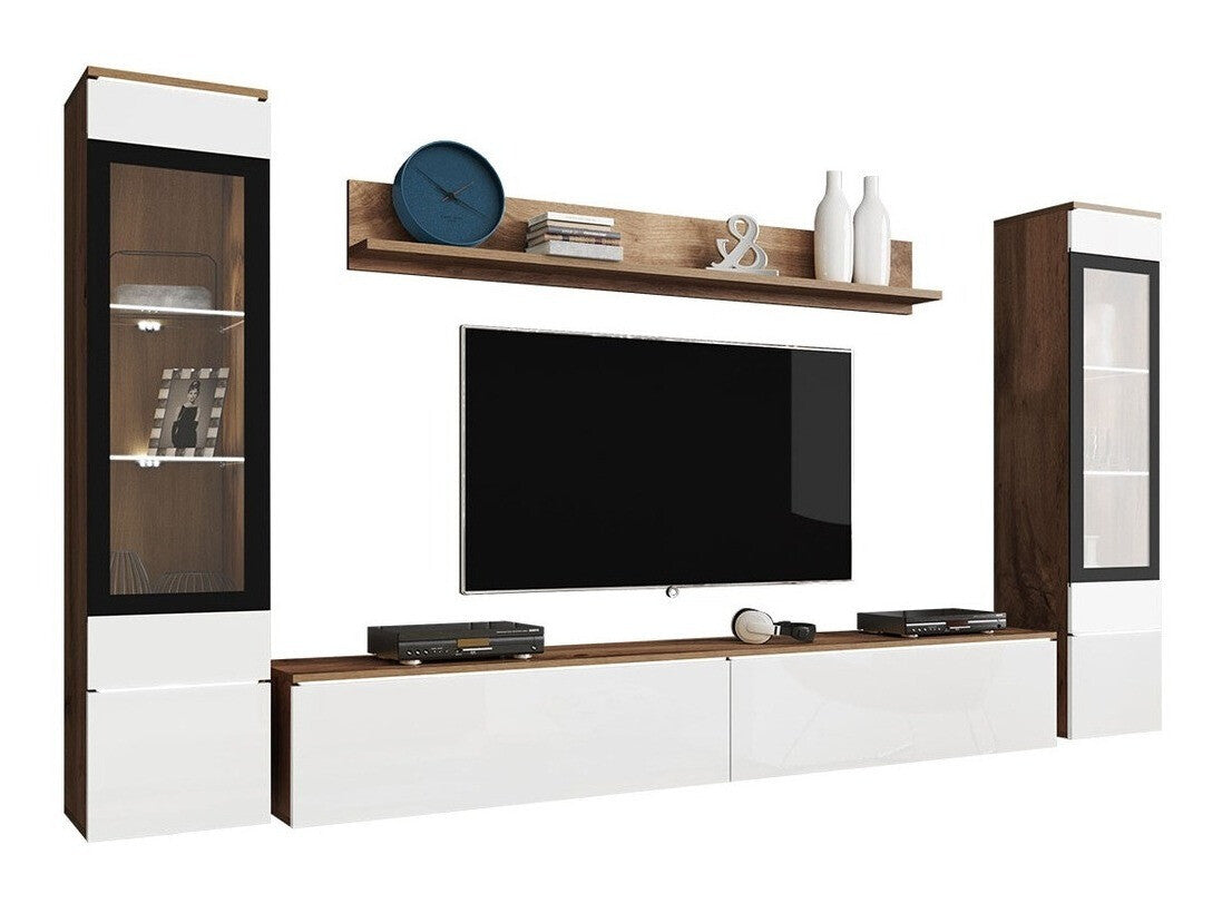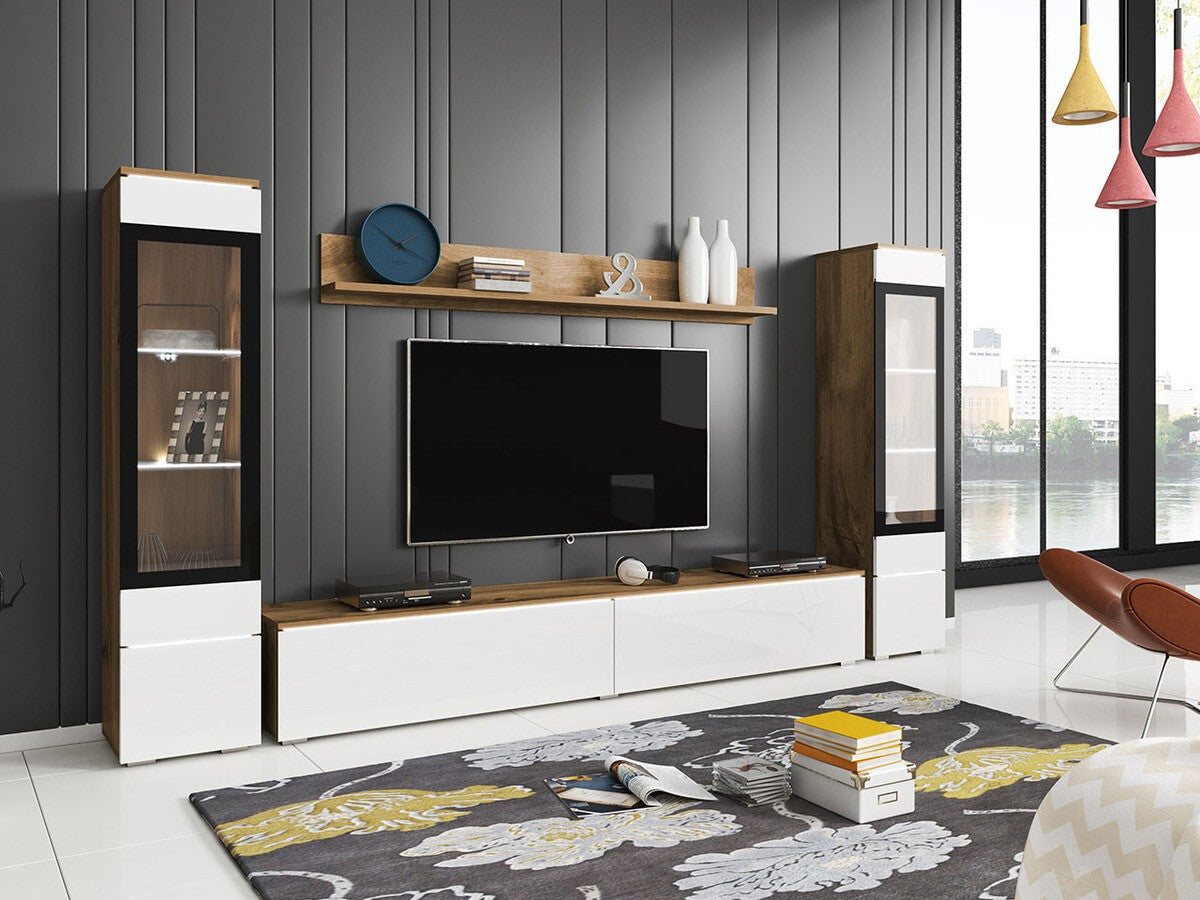 Nappali szett Vera II (Sawoti II), Szín: Wotan tölgy + Fényes fehér, Led világítás: Igen