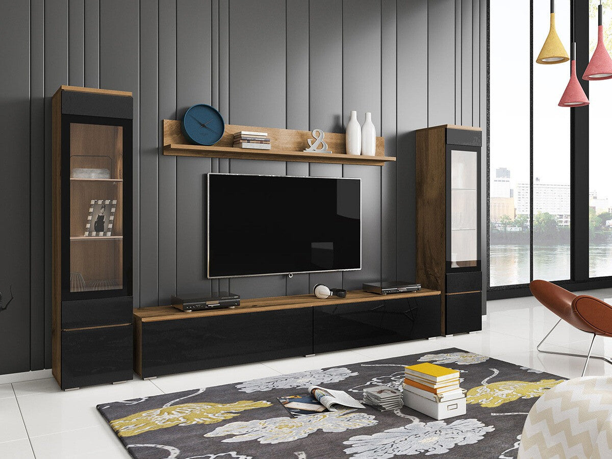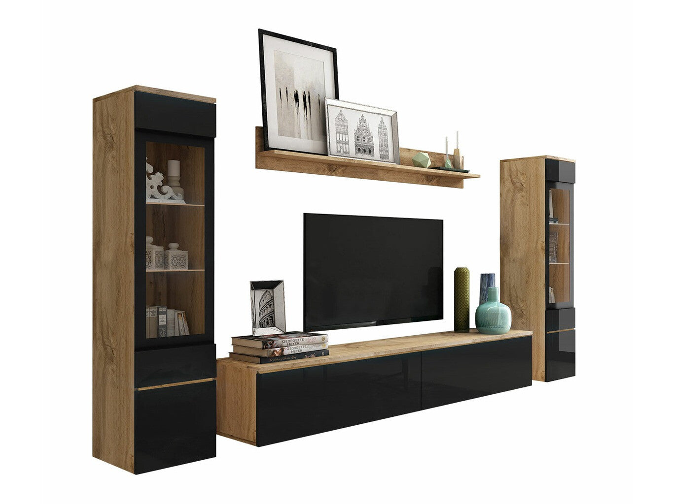 Nappali szett Vera II (Sawoti II), Szín: Wotan tölgy + Fényes fekete, Led világítás: Nem