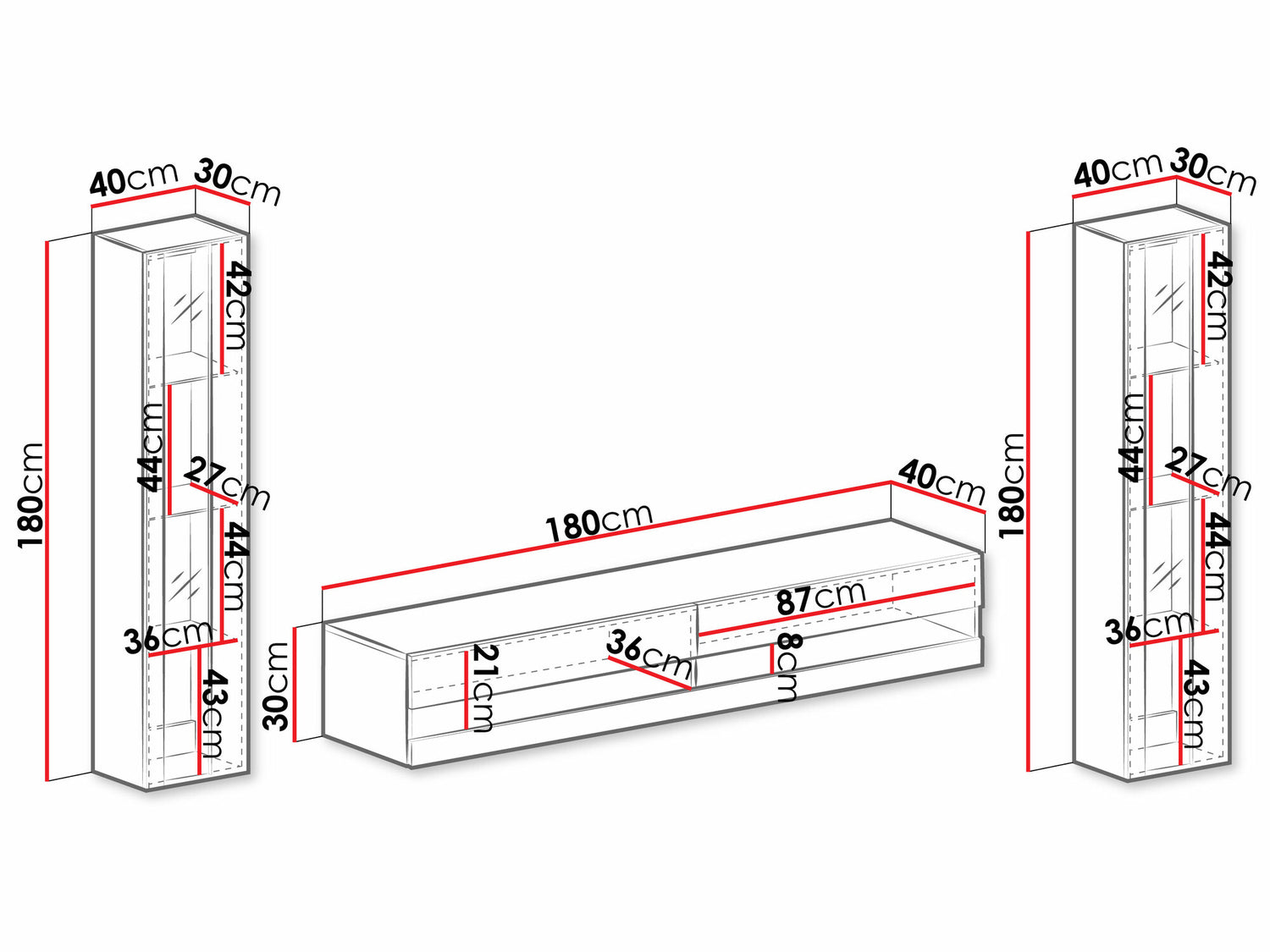 Nappali szett Vigo New III, Led világítás: Igen fehér, Szín: Fekete + Fényes fekete
