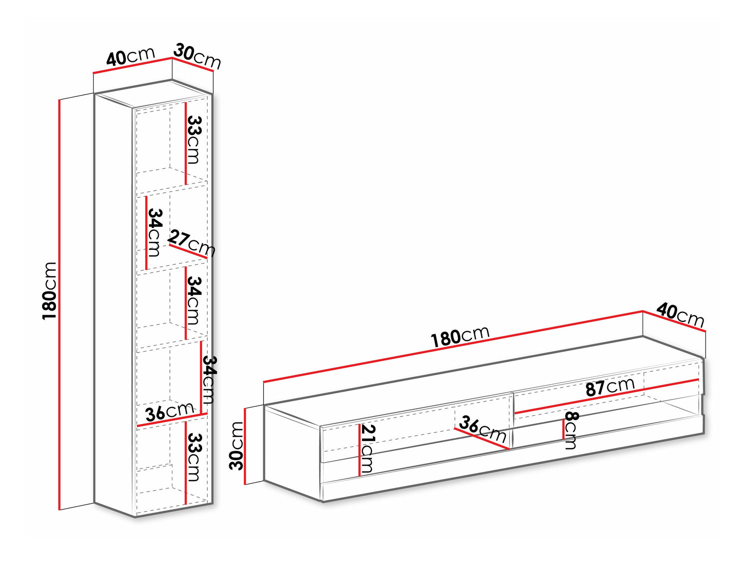 TV asztal méret30 x 180 x 40 cm