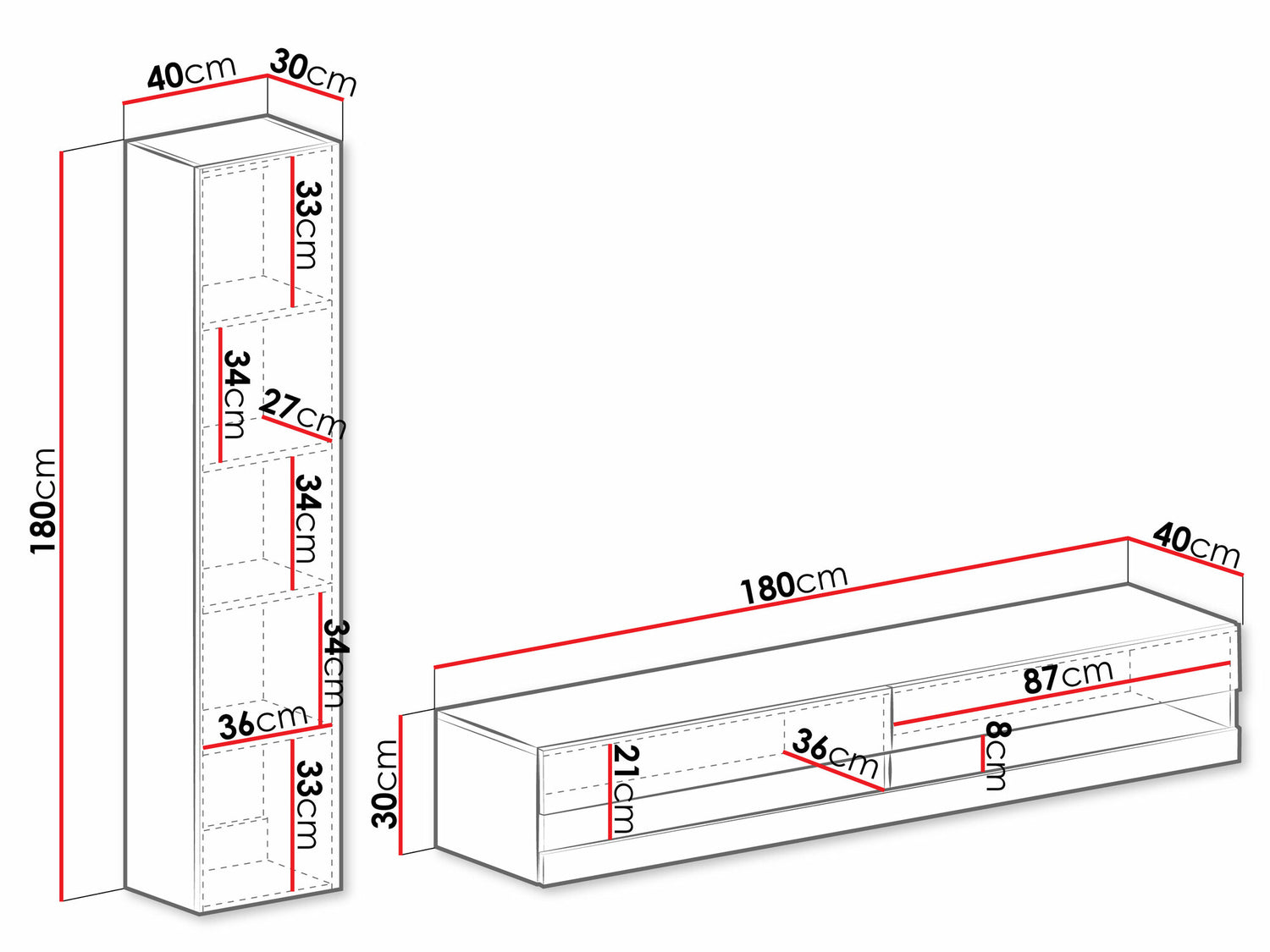 Nappali szett Vigo New IX, Led világítás: Igen fehér, Szín: Fehér + Fényes fehér