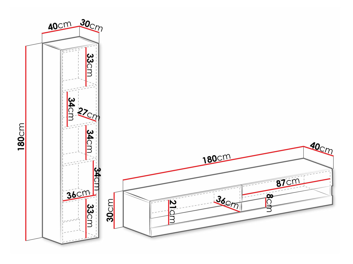 TV asztal méret30 x 180 x 40 cm