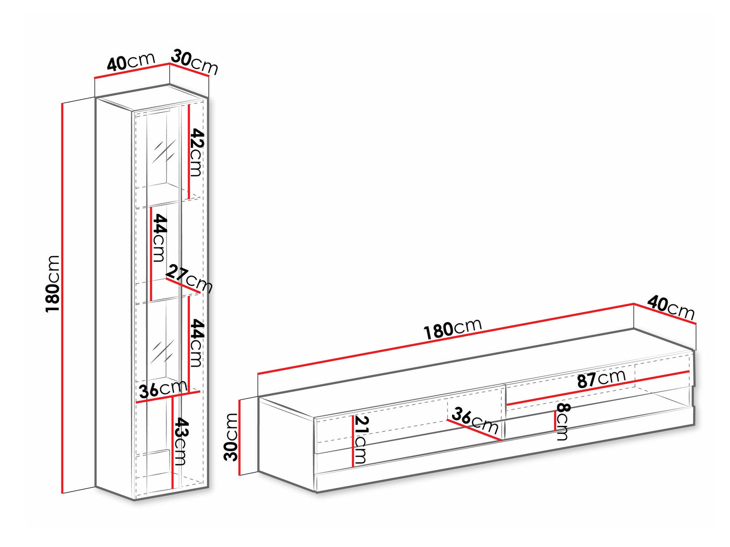 TV asztal méret30 x 180 x 40 cm