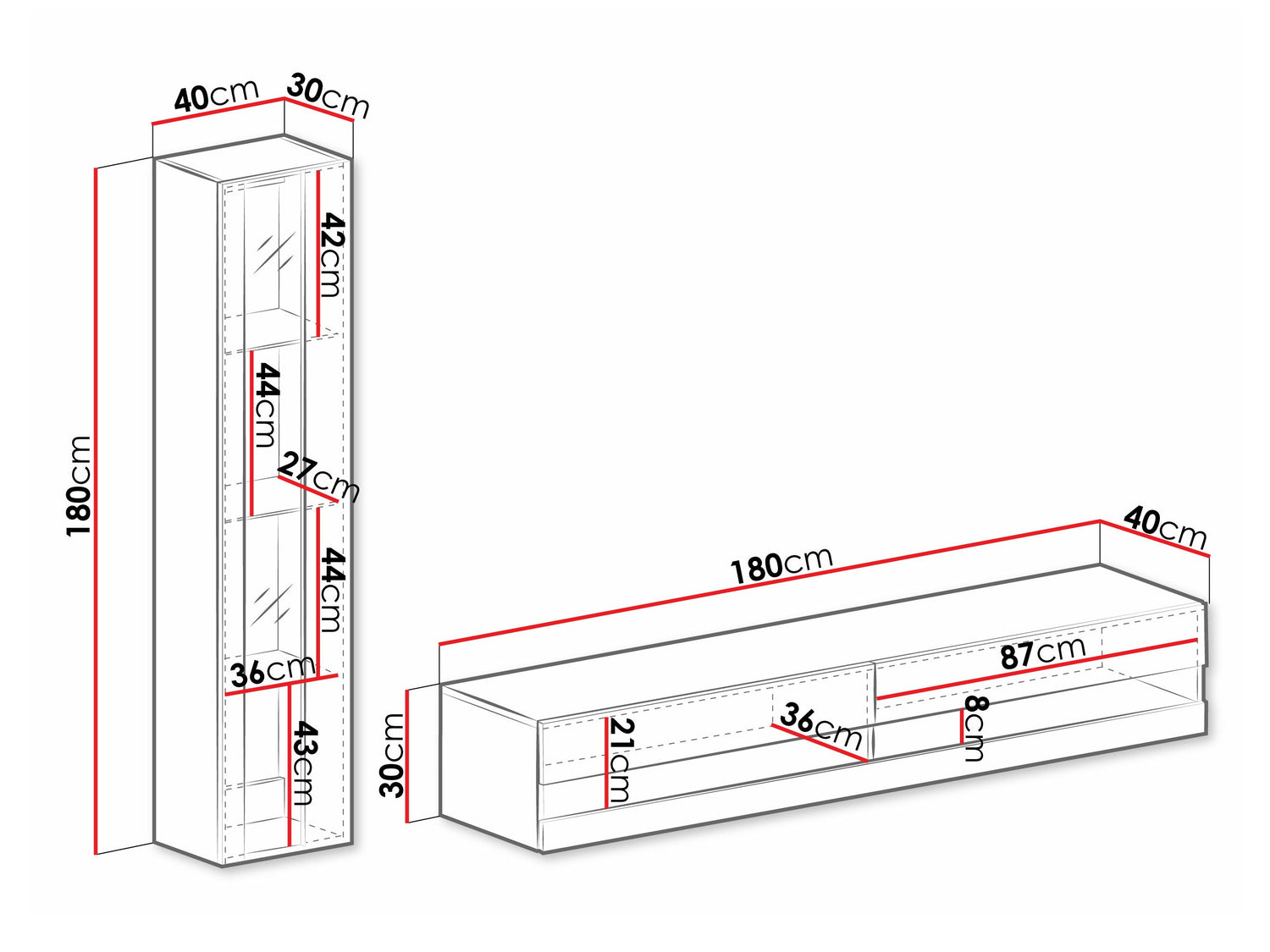TV asztal méret30 x 180 x 40 cm