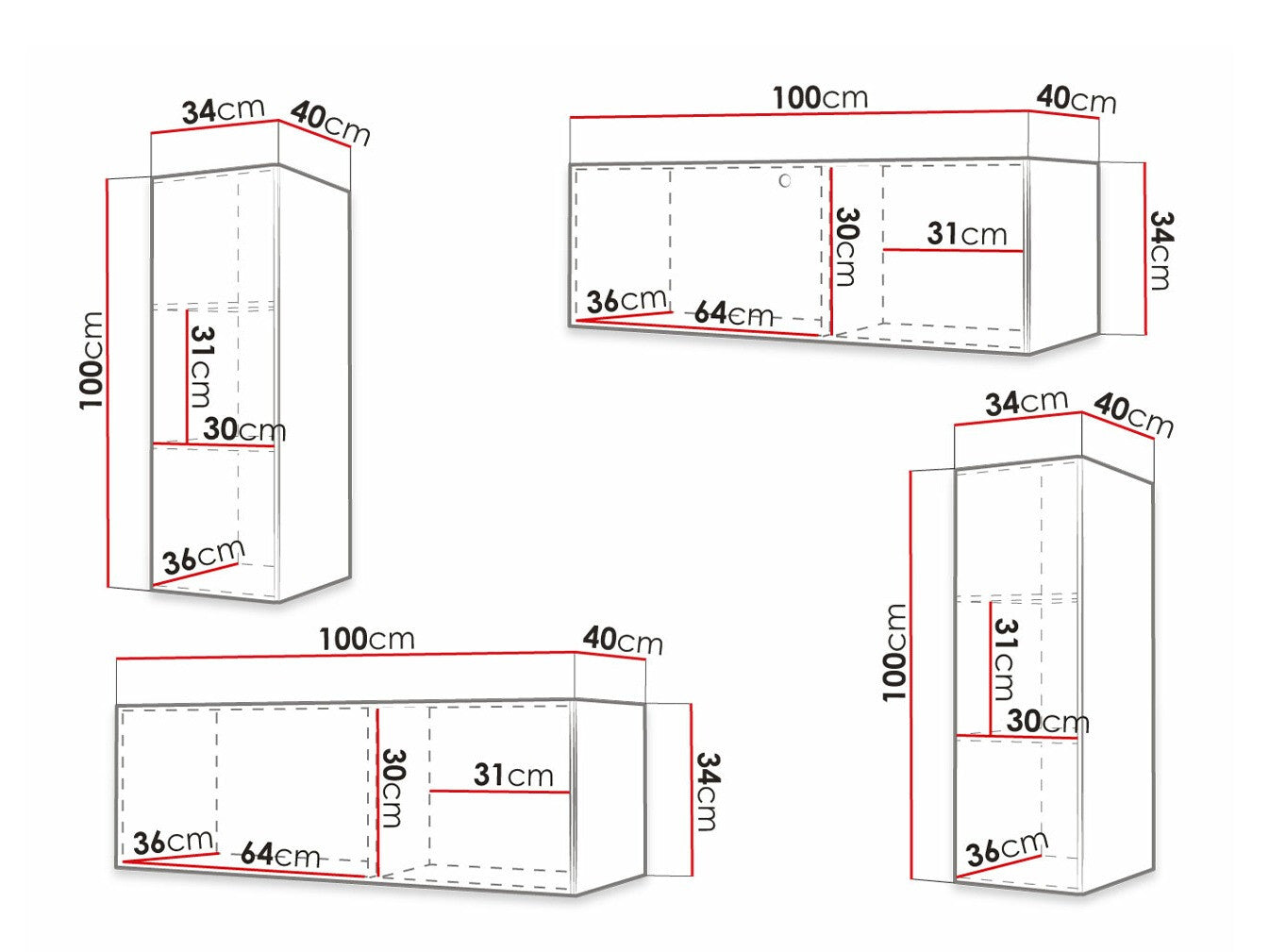 Függesztett szekrény méretei100 x 34 x 40 cm
