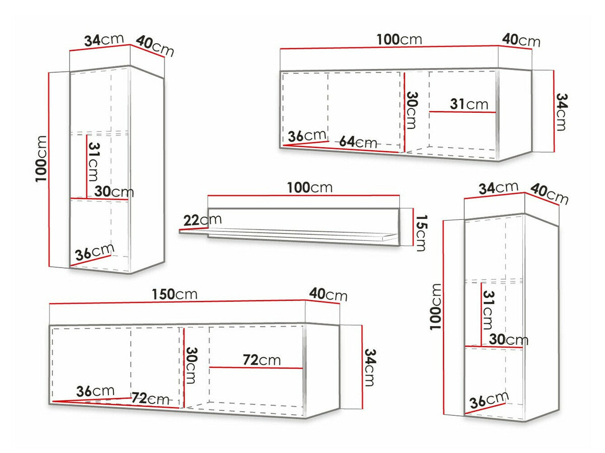 Függesztett szekrény méretei100 x 34 x 40 cm