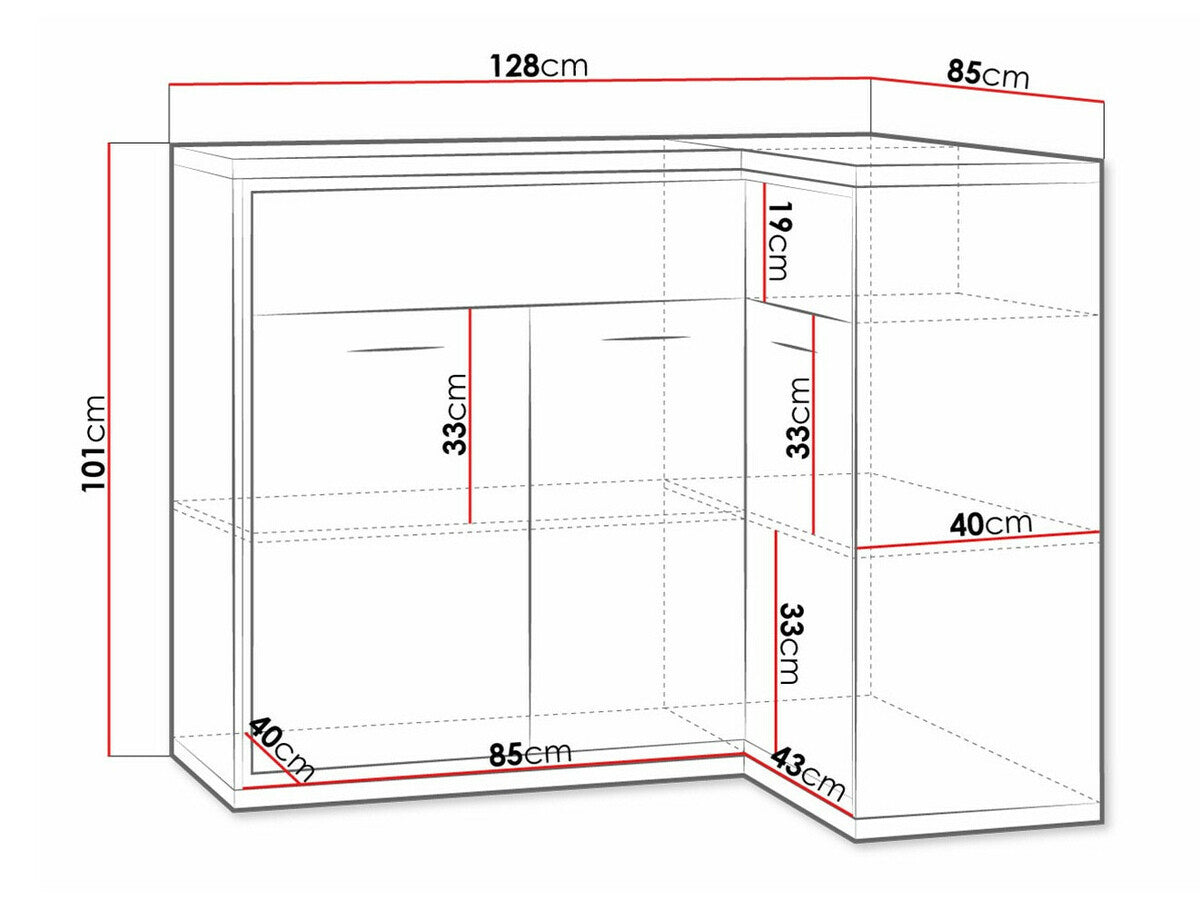 Sarok komód MEDIOLAN 15 K (Sarged SR15 K), Szín: Világos fa + Tölgy, Led világítás: Nem, Lábak: Nem