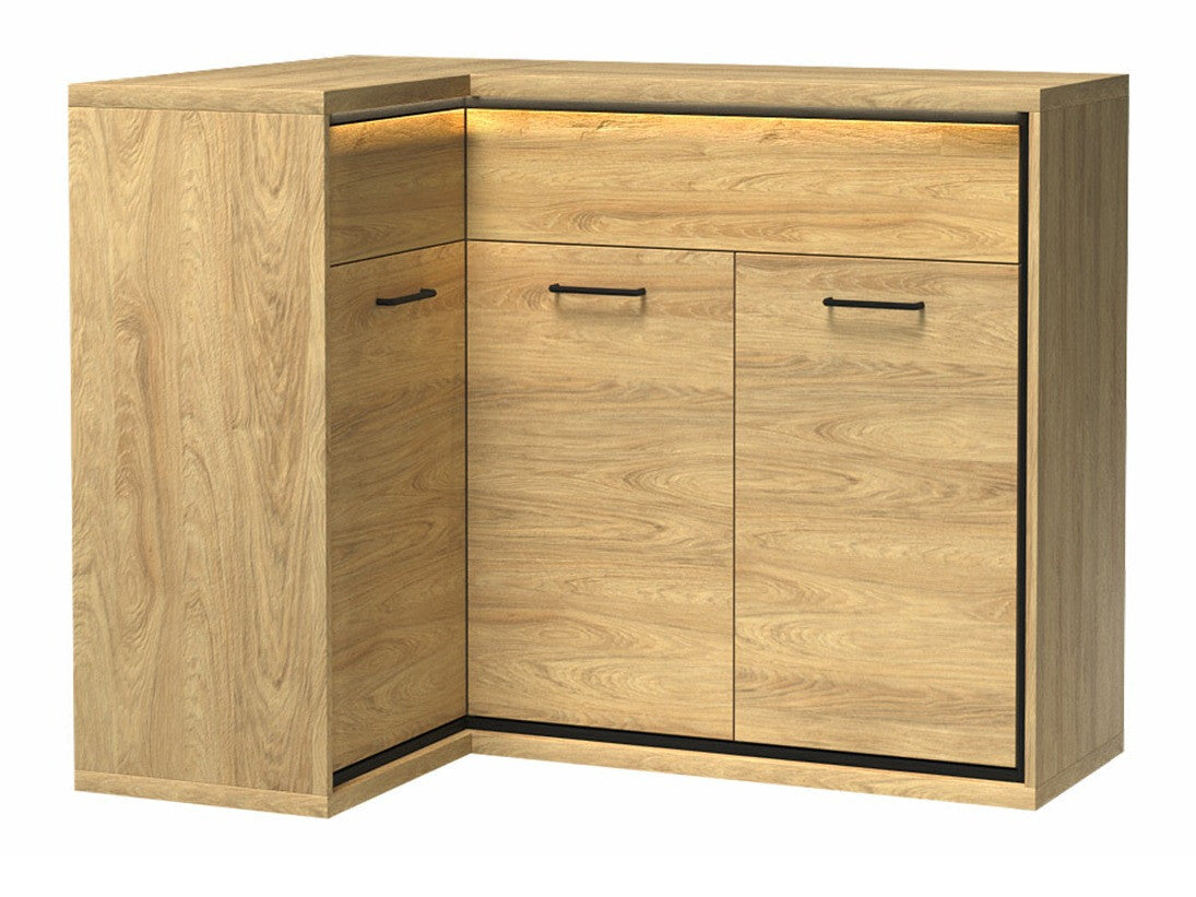 Sarok komód MEDIOLAN 15 O (Sarged SR15 O), Szín: Világos fa, Led világítás: Igen, Lábak: Nem