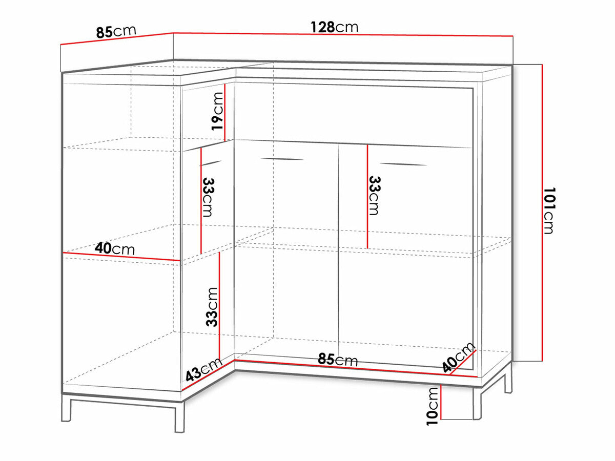 Sarok komód MEDIOLAN 15 O (Sarged SR15 O), Szín: Világos fa + Tölgy, Led világítás: Nem, Lábak: Igen