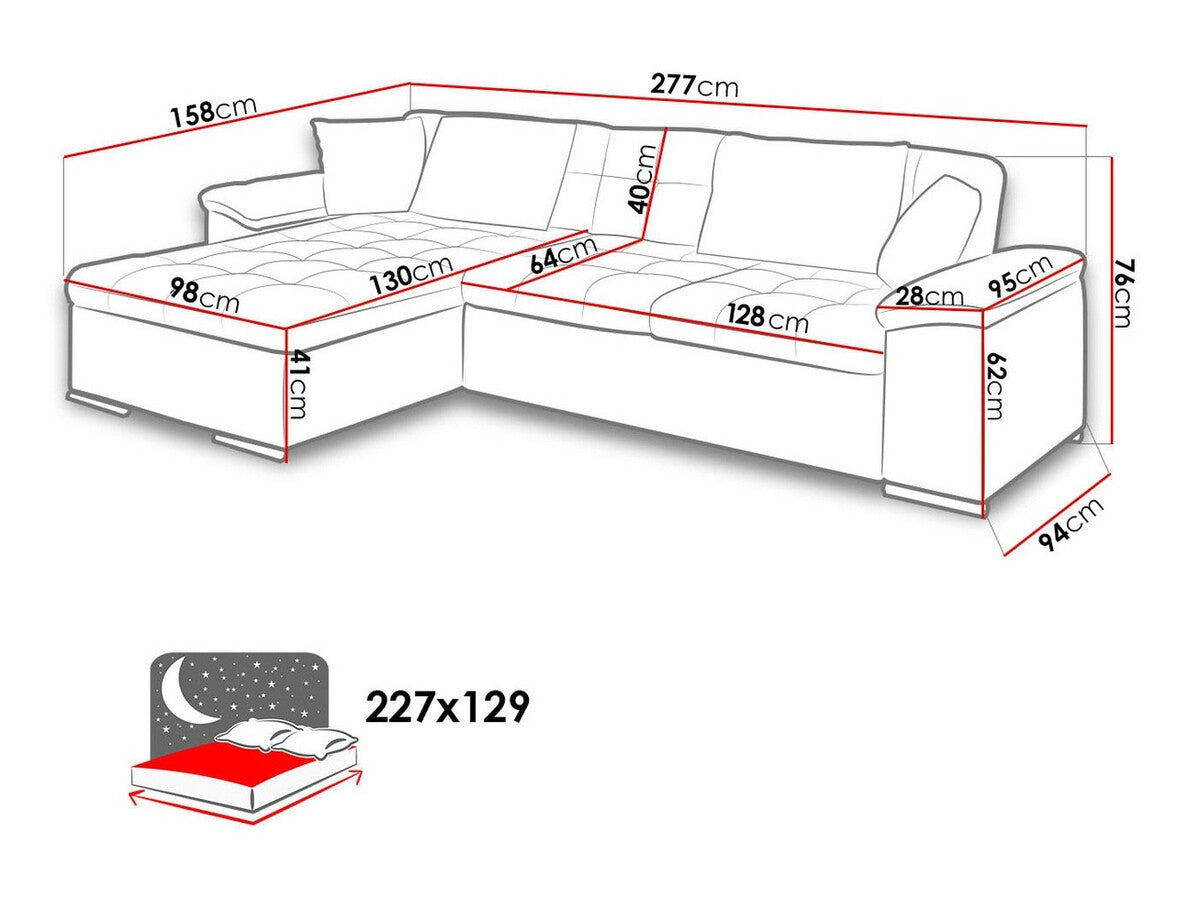 Sarokkanapé Diana (Dinem) II, Szín: Lux 05 + Lux 06, Változatok: Jobbos