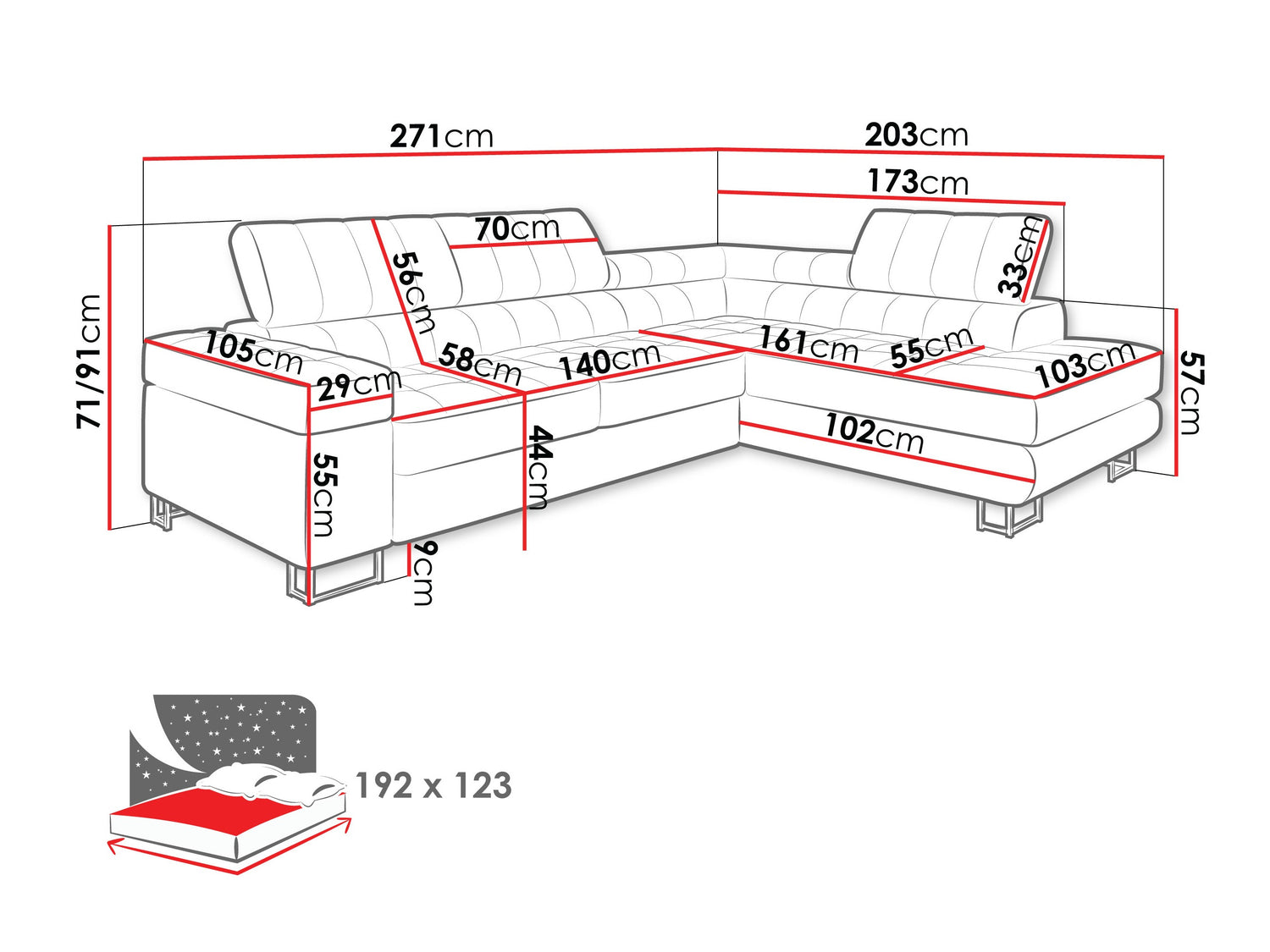 A fekvőfelület hossza192 cm