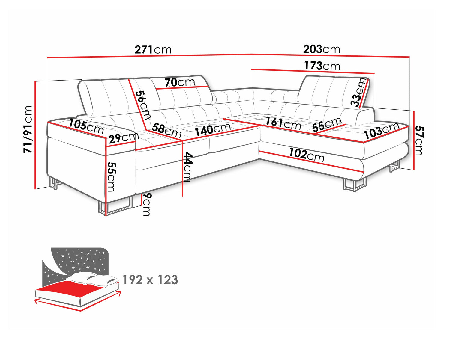 A fekvőfelület hossza192 cm