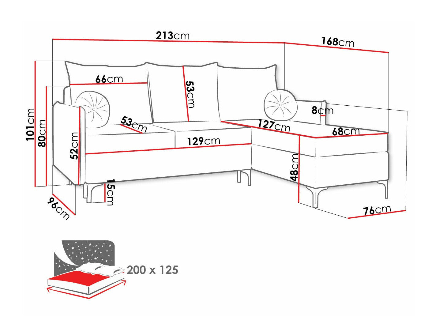 A fekvőfelület hossza200 cm