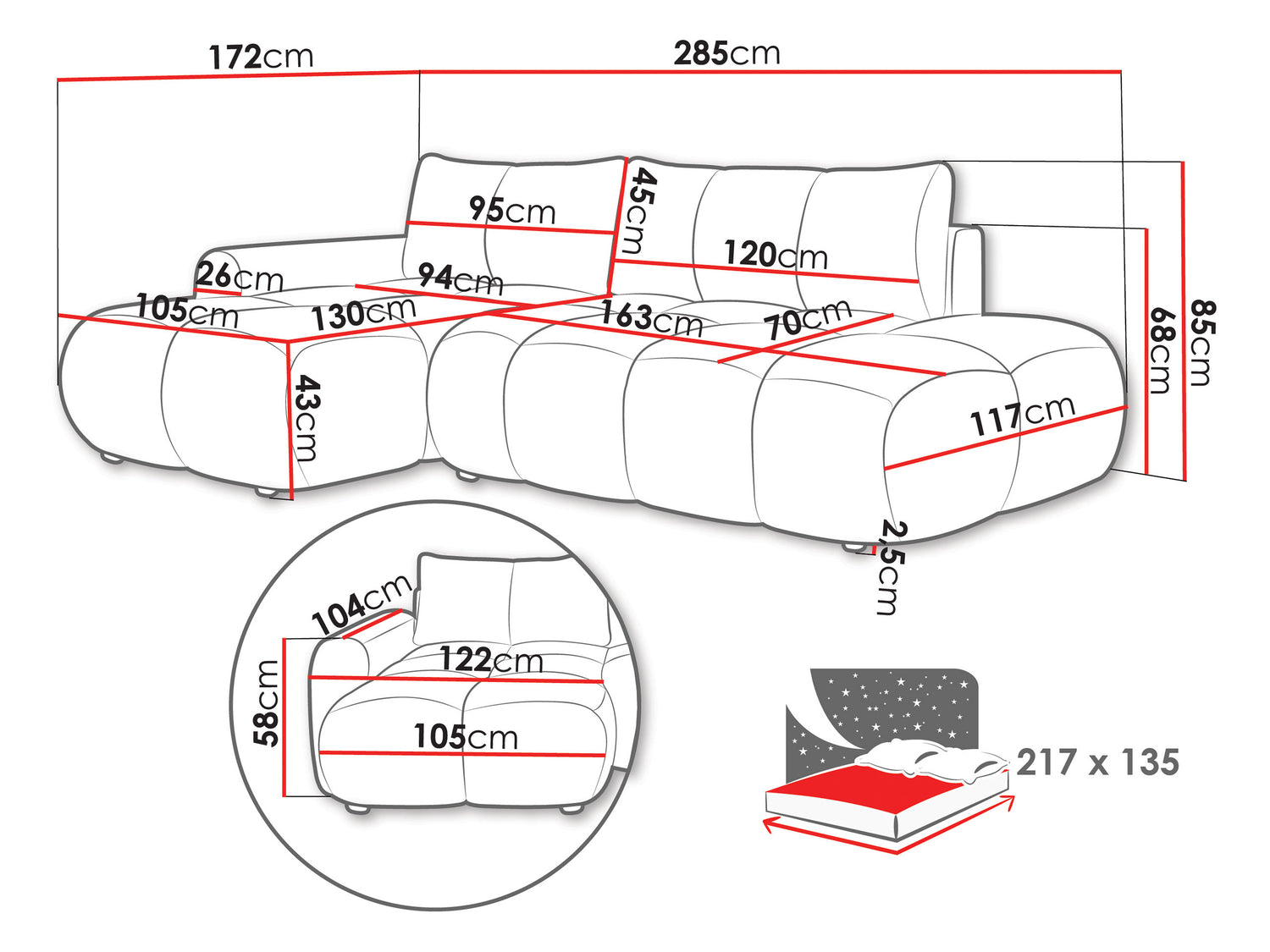Sarokkanapé MITTO O, Szín: Flow 06, Változatok: Bal