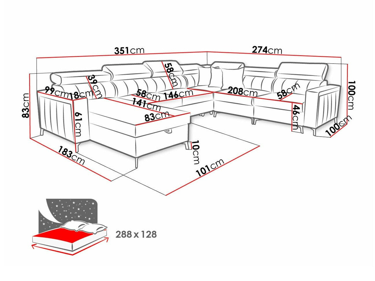Sarokkanapé Narożnik BALTICO VII, Szín: Mono 231 + Botanical 36, Változatok: Balos